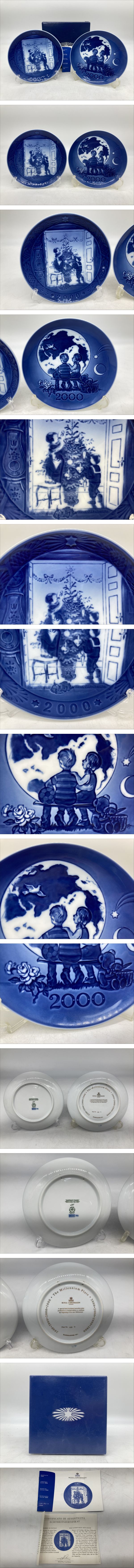 京都6★ RPYAL COPENHAGEN ロイヤルコペンハーゲン 2000 2枚セット 箱付き有 クリスマス 少年 少女 皿 飾り皿 プレート 收藏