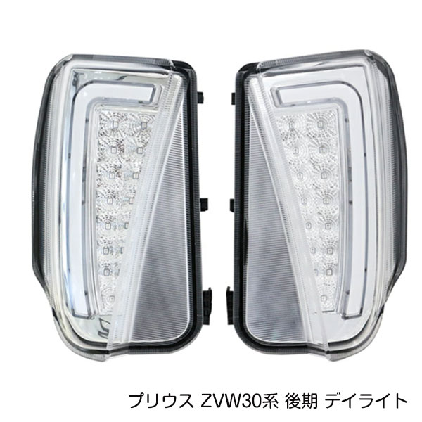 プリウス ZVW30系 後期 デイライト LED ファイバー 搭載 フロント バンパー ウインカー 左右セット クリアレンズ