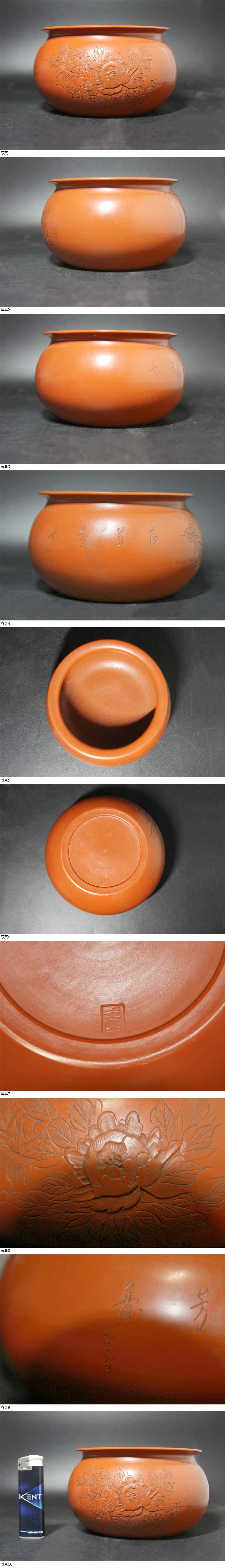 | <聴雲> 建水 朱泥 花図 漢詩 煎茶 茶道具 古玩 骨董品 古美術品 Y1-220 |