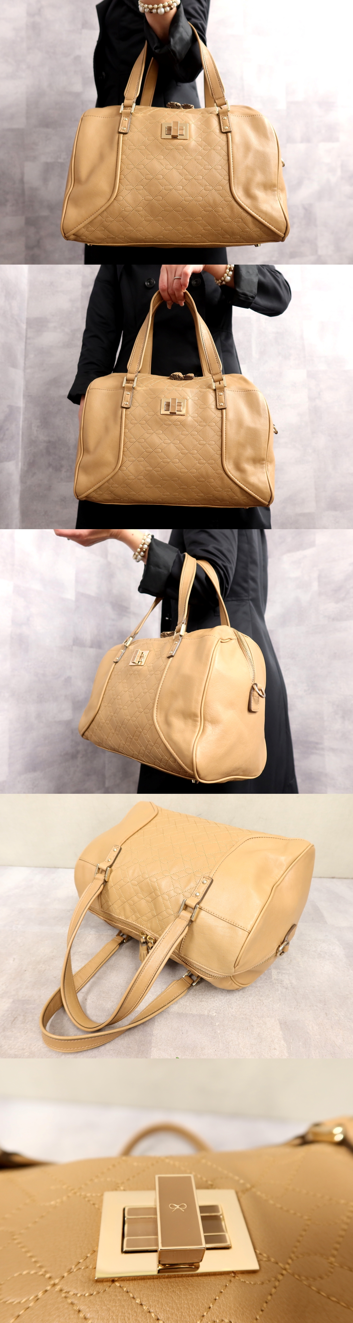 ●超美品●Anya Hindmarch アニヤハインドマーチ●カーフ レザー 本革●ハンド バッグ●ベージュ●ゴールド金具●B5 収納 かばん●Js65456 收藏