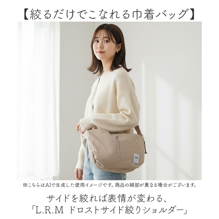 ☆ ライトグレー ☆ L.R.M ドロストサイド絞りショルダー LRM バッグ RK-1173 ショルダーバッグ ドロストバッグ 斜めがけバッグ 巾着バッグ 收藏