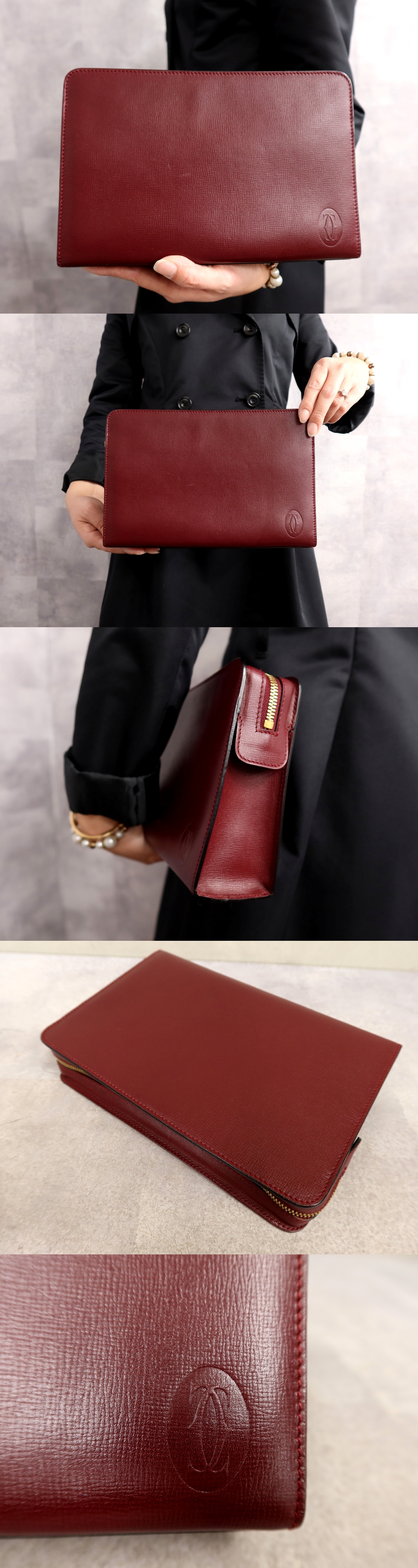 ●超美品●Cartier カルティエ●マスト●カーフ レザー 本革●セカンド クラッチ バッグ●ボルドー●ゴールド金具●収納 かばん●Js66359 收藏