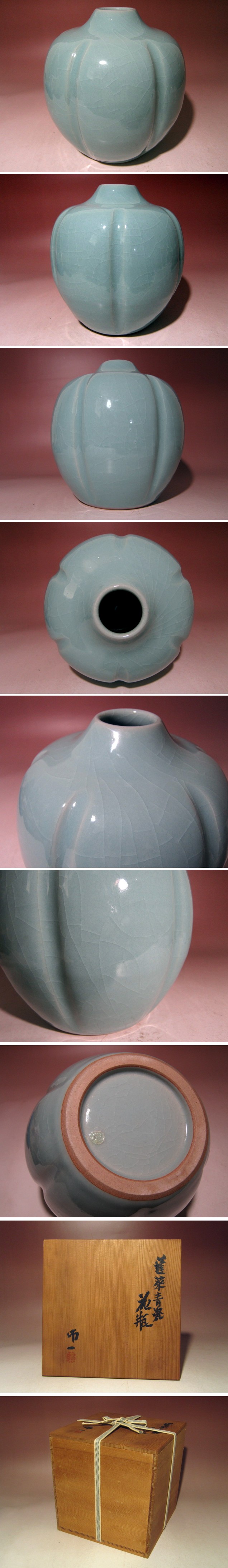 ※即決※ 人間国宝 清水卯一 蓮莱青磁花瓶★気品漂う美しい逸品★u943 收藏
