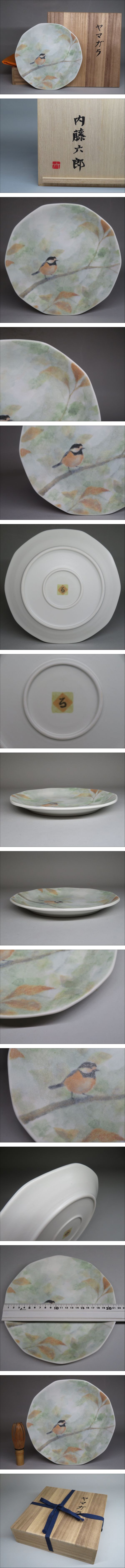 | 陶芸作家 「内藤六郎」作 色絵皿【ヤマガラ】 飾皿 共箱 | ||