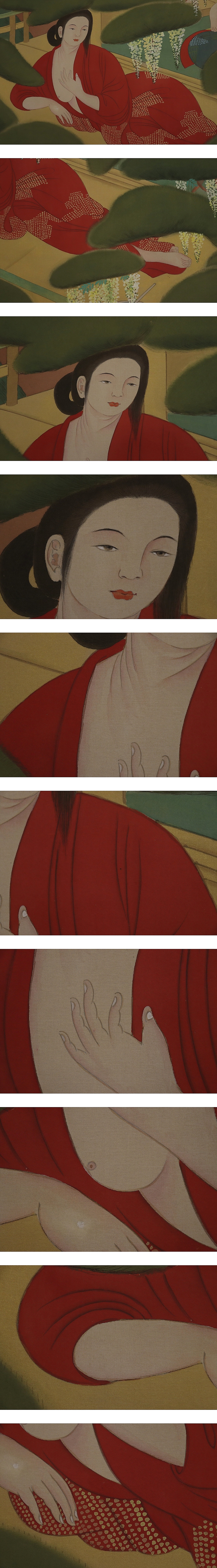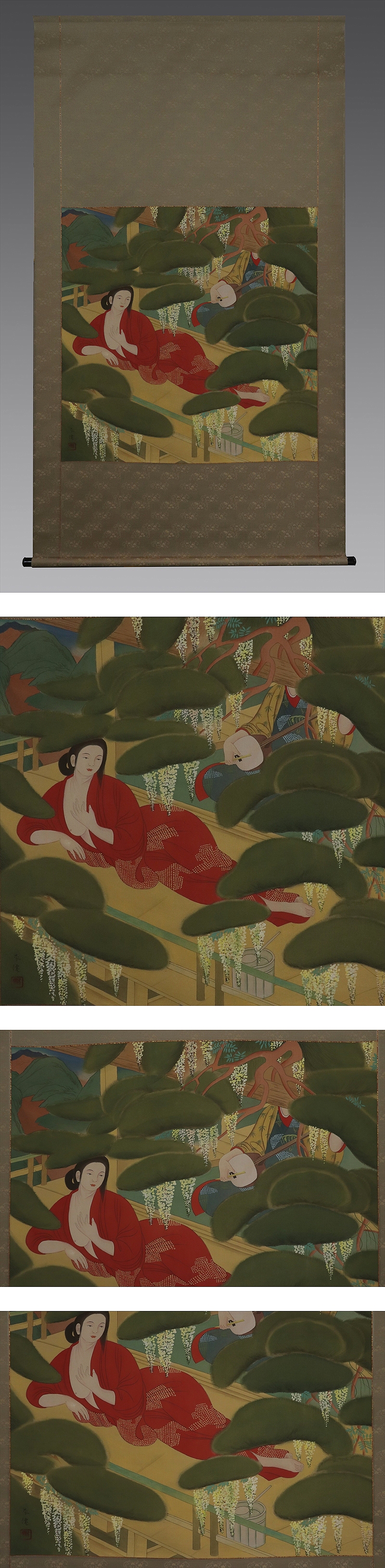 | №1610057名品【模写】土田麦僊【大幅・藤美人】◆絹本◆合箱◆掛軸 | |