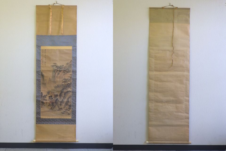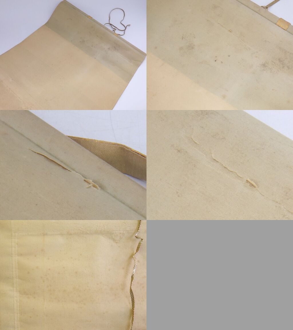 ※下記、【商品詳細】及び【落札後のご案内・注意事項・備考】欄をお読みいただき、ご理解頂いた上でご入札頂けますようお願い致します。 ![]() ![]() ![]() ![]() ![]() 《商品詳細 》 ◆掛軸 祥堂/青雲 山水図 絹本 箱無 2点セット出品致します。 ◆祥堂 全体 縦:約186.5cm 横:約54.5cm 本紙 縦:約104.5cm 横:約41cm *素人採寸の為、多少の誤差はご容赦下さい。 ◆青雲 全体 縦:約164cm 横:約49cm 本紙 縦:約82cm 横:約37cm ◆箱なし 《商品状態 》 ◆中古品・経年保管品となります。 ◆祥堂/全体的にシミ・ヤケ・巻き皺がございます。軸装に破れがございます。 ◆青雲/全体的に擦れ・汚れ・シミ・ヤケ・劣化がございます。 [ ※商品についての注意事項 ] ◆ いずれも画像を良くご確認頂き、ご自身の判断で納得されたうえで入札をお願い致します。 ◆ 画像につきましてはデジカメ撮影の為、実際の色合いと異なる事もありますのでご了承ください。 |