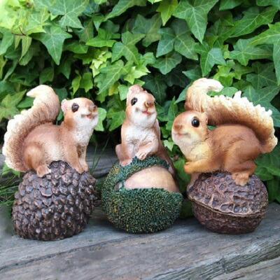 りすの置物 リス木の実3匹セット 31968HH リスブレイキング 動物 オーナメント オブジェ ガーデン ガーデニング 庭 置物 收藏
