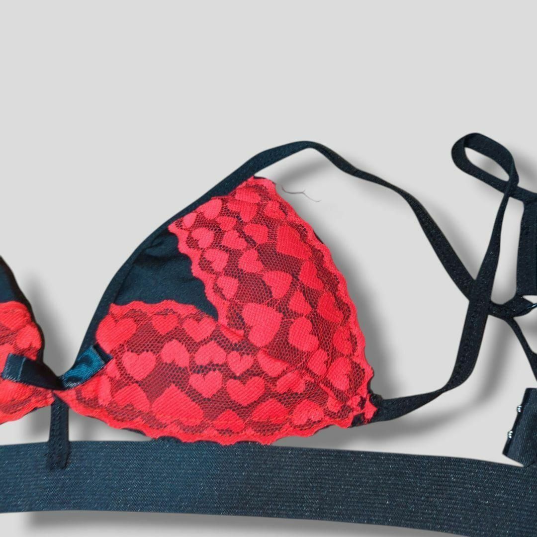 赤と黒のハート模様のレースブラジャーとショーツのセット。| 出价者 | 信用 | 价格 | 时间 |