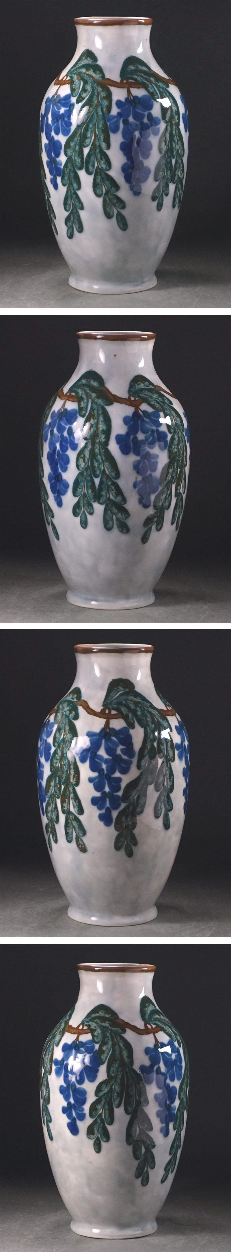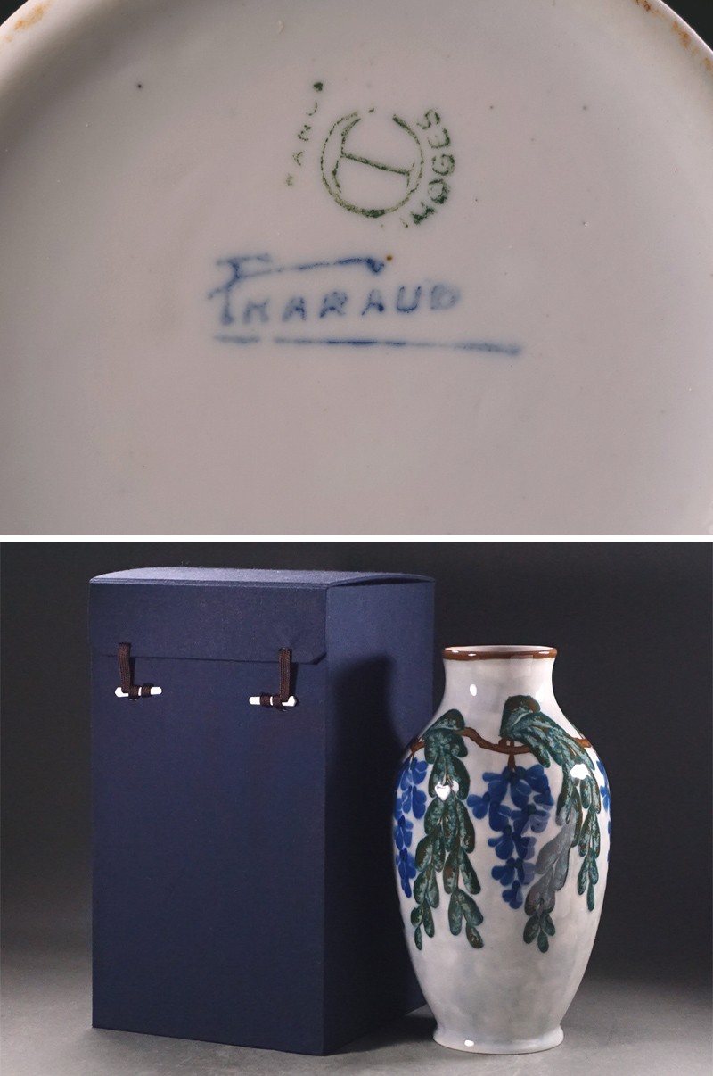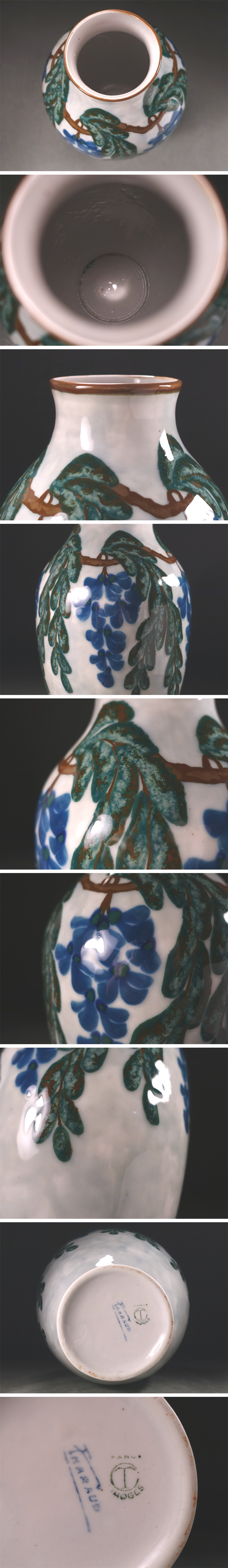 ∇花∇【Camille Tharaud Limoges】 1930年頃のリモ-ジュ磁器 釉彩藤絵花瓶 H28cm Tharaudサイン 收藏