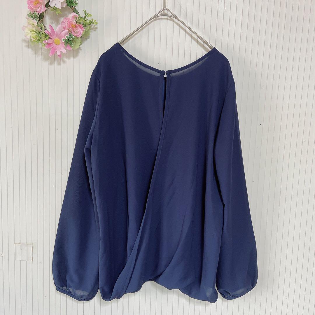67-54 -大特価ー 美品★ 【ブラックバイマウジー】 ピンタック シアー ブラウス ドレープ 長袖 BLACK BY MOUSSY レディース ネイビー 收藏