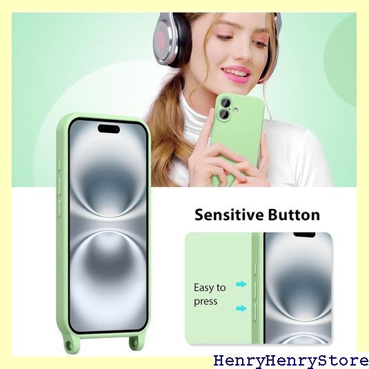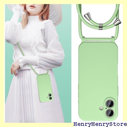 UEEBAI 対応 iPhone 16 用の ケース 下防止 紛失防止 ショルダー バンパー - 抹茶グリーン 2045 收藏