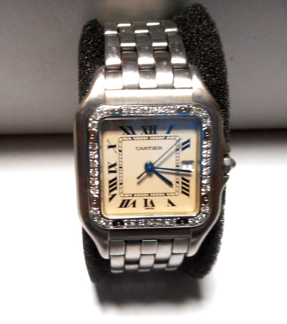 | カルティエ サントス SM ケースに天然ダイヤをセッティングします。 | ||