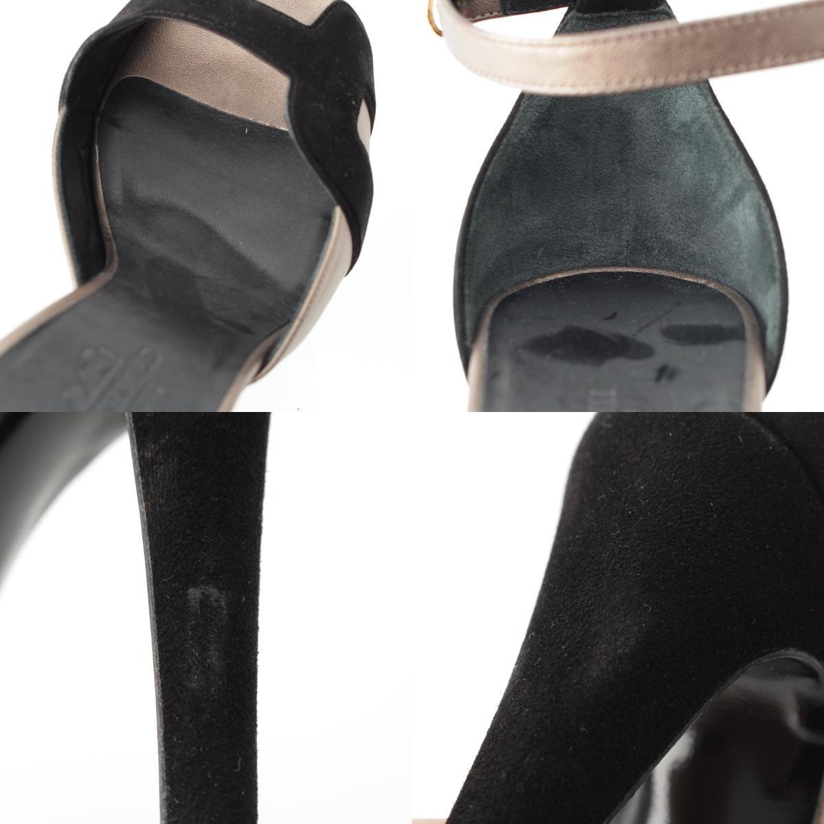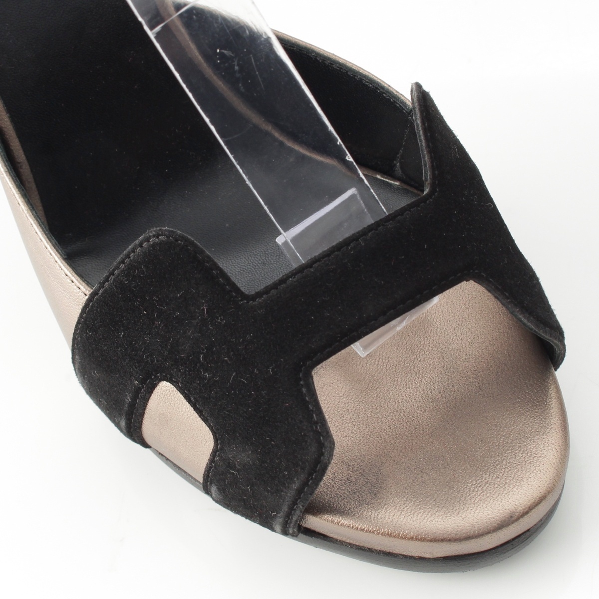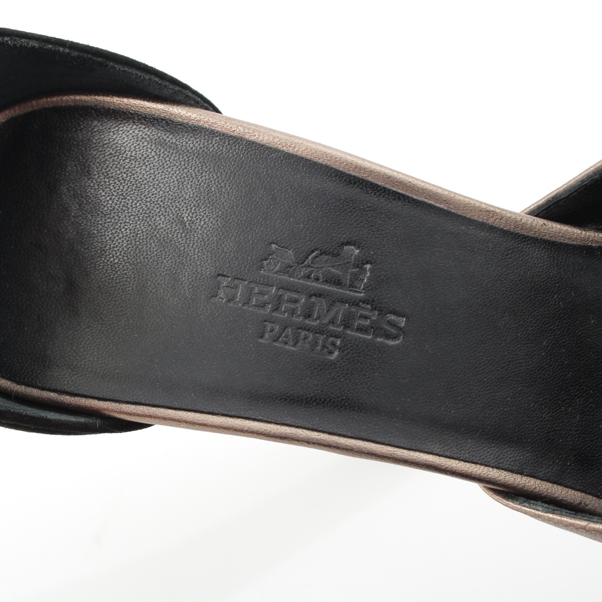 エルメス ジョイ70 ベロア ストラップ ヒール サンダル ブラック×ゴールド 37【中古】 收藏