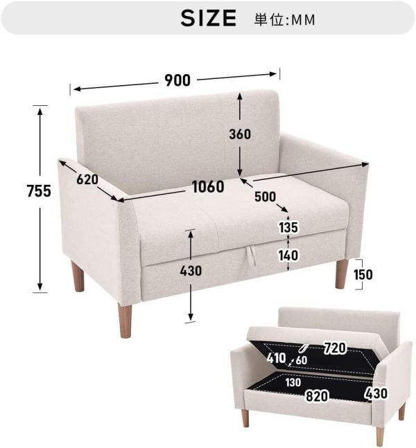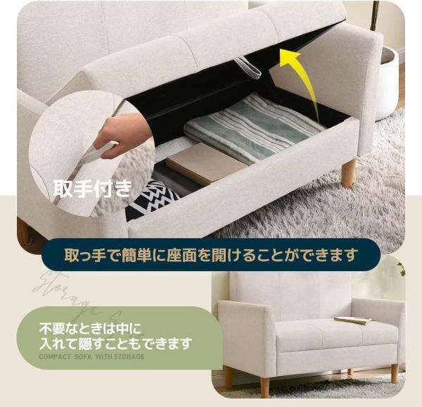 ソファ ソファー 2人がけ 収納付き 幅106cm 肘付き コンパクト ローソファ かんたん組立 2人掛けソファ 2人掛けソファー ベージュ AFD802 收藏