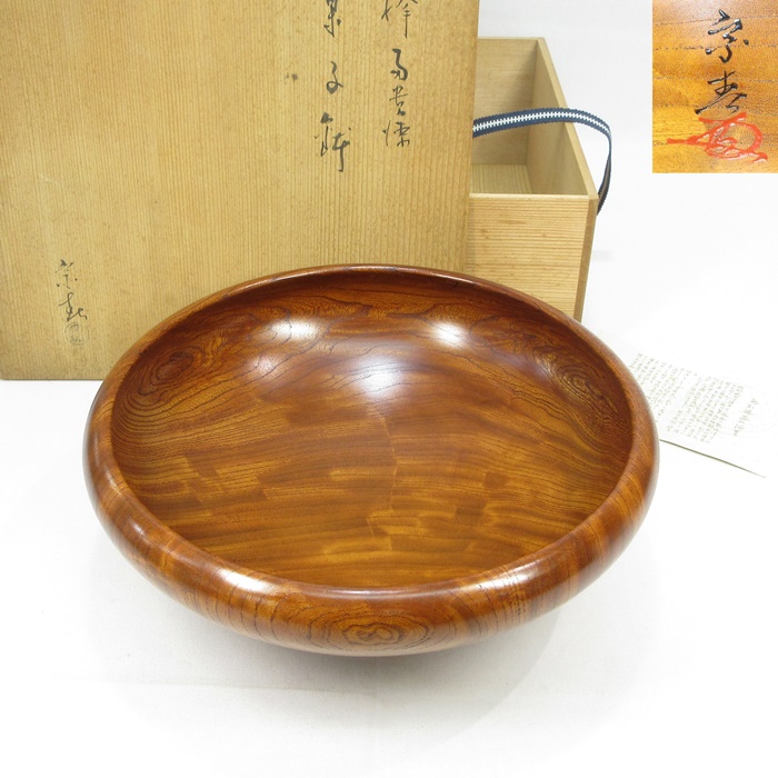 【B0691】漆芸 木村宗春 欅 富貴漆 菓子鉢 共箱 栞付き 鳥取 收藏