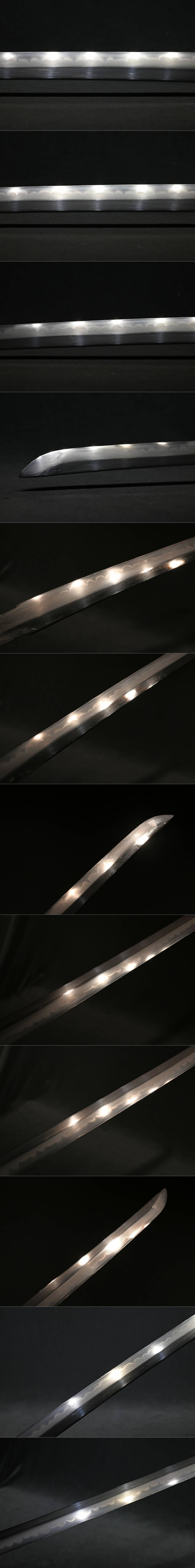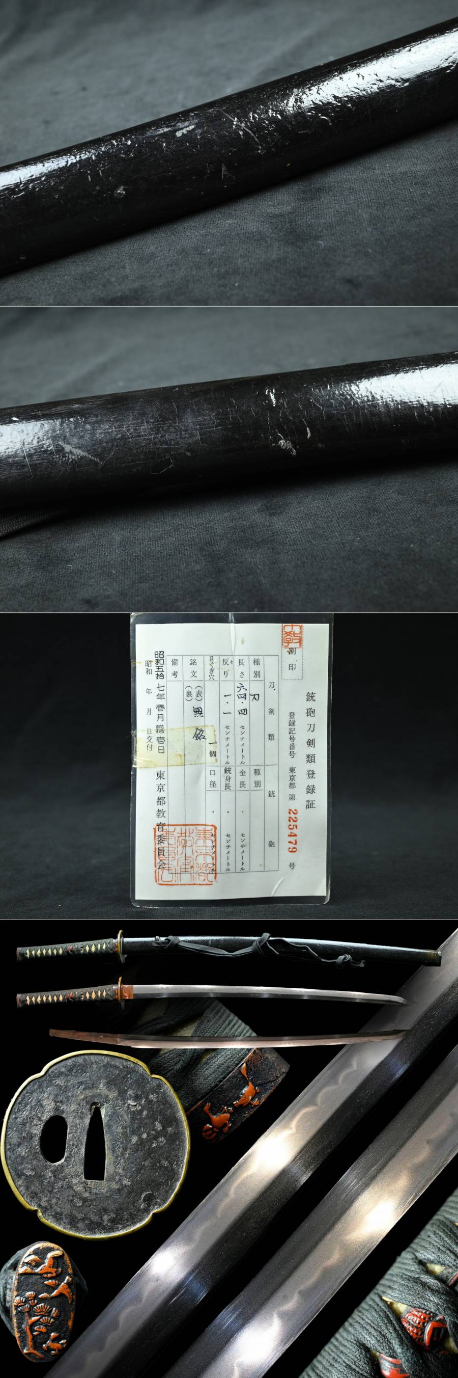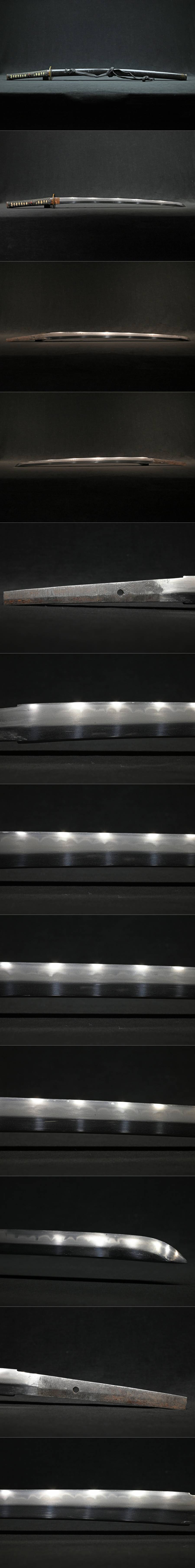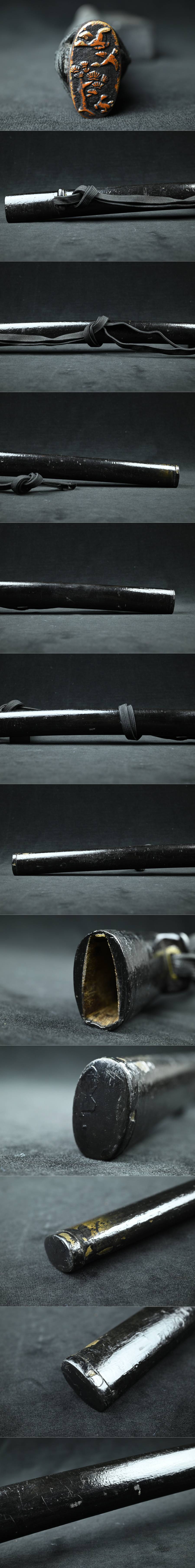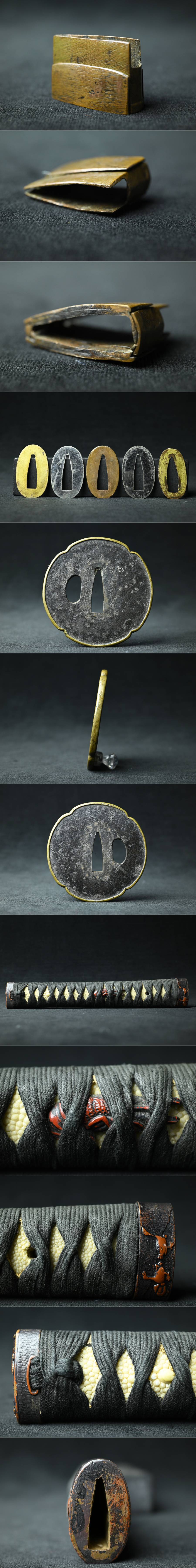 【昊】時代 互の目刃紋 黒漆塗鞘 鉄地金覆輪木瓜型鍔 松鳥縁頭 伊勢海老目貫 鮫革巻外装拵 刀剣武具[RN75oUs] 收藏