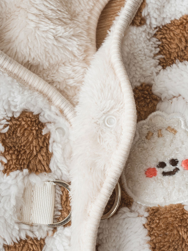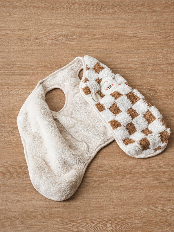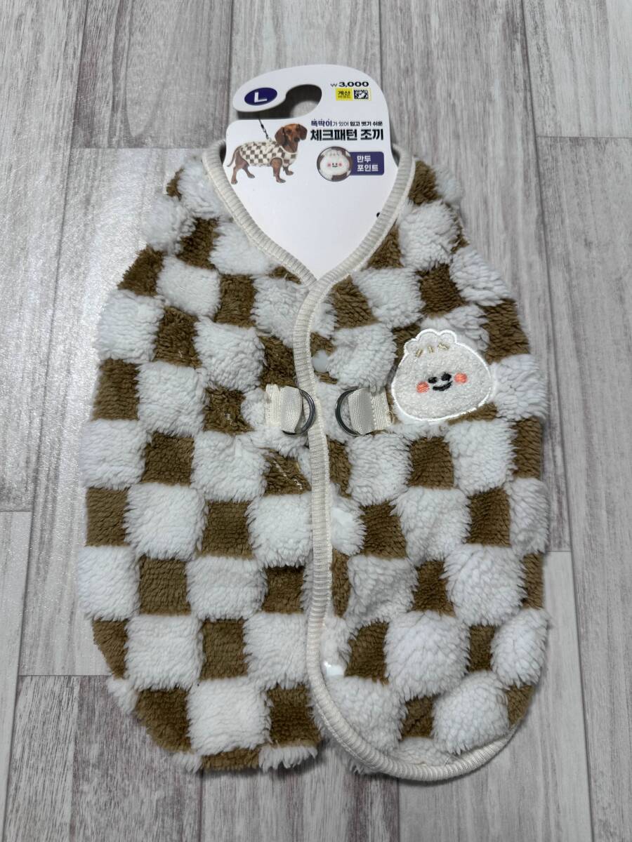 ペット用 犬用 ポイント チェック パターン ベスト Mサイズ ブラウン もこもこ 收藏