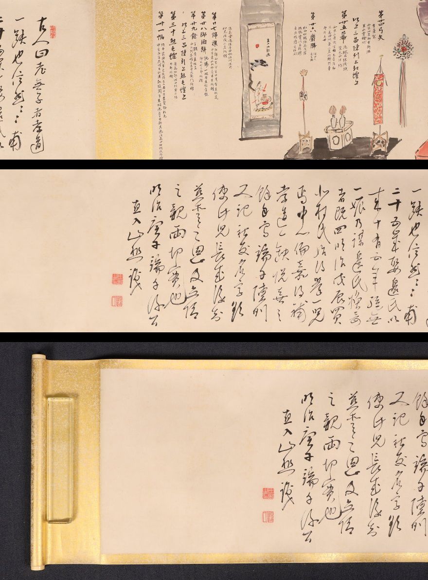 【模写】【伝来】am4091〈田能村直入〉端午陳列図巻物 共箱 田能村竹田師事 大分の人 大阪で活躍 收藏