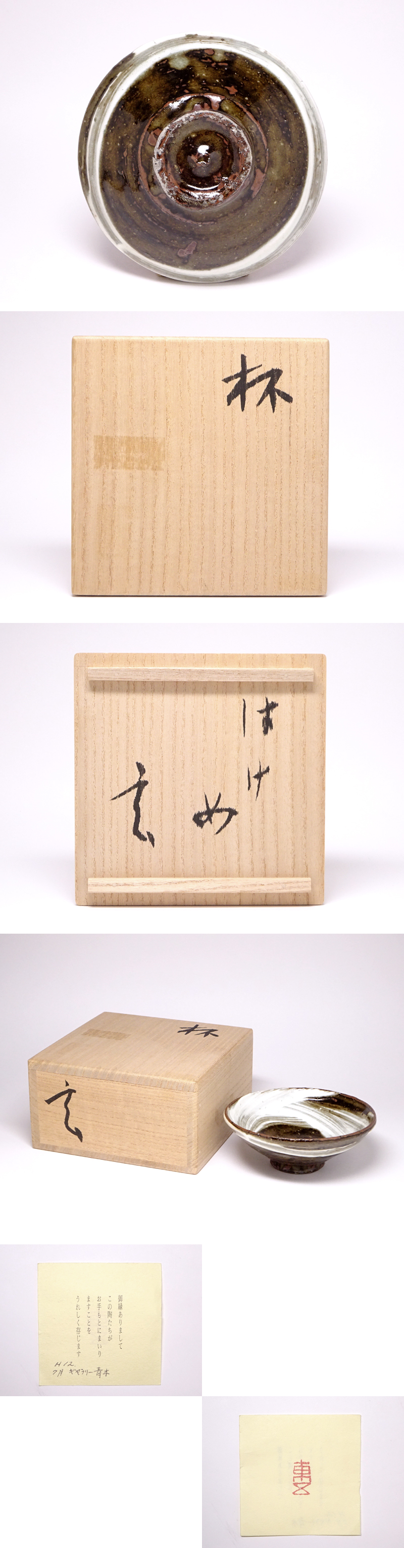 慶應◆李朝陶磁の第一人者【小林東五】個展出品作 はけめ 杯 刷毛目盃 酒盃 酒器 共箱付 收藏