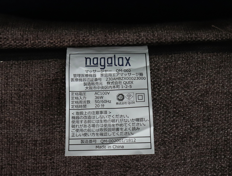 11198■ 美品 稼働品 NAGALAX QM-002 ナガラックス エアマッサージャー ブラウン 箱 取説付き マッサージ器 收藏