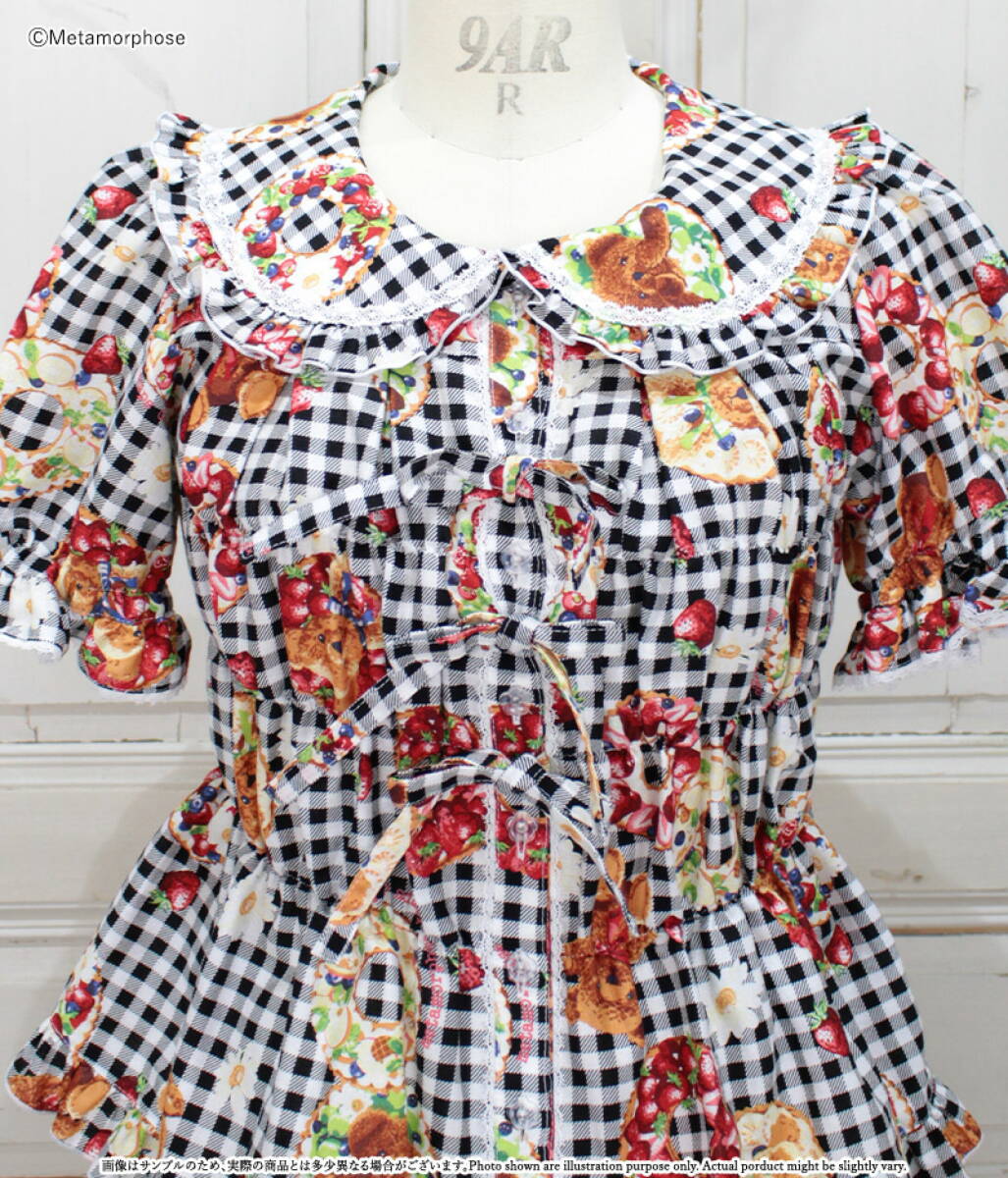 ■metamorphose■Gingham fruits tart半袖ブラウス プラスサイズ黒系■ロリータフルーツタルト苺くまクマギンガムチェックBL定価19580円 收藏