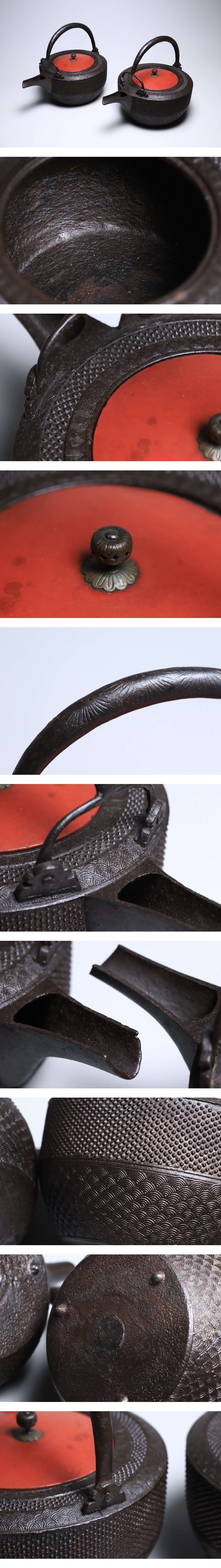 鉄瓶 銚子一対 銅摘 木製漆器蓋 青海波 急須 煎茶道具 金工 時代/茶道具/古美術/骨董品 L07836 收藏