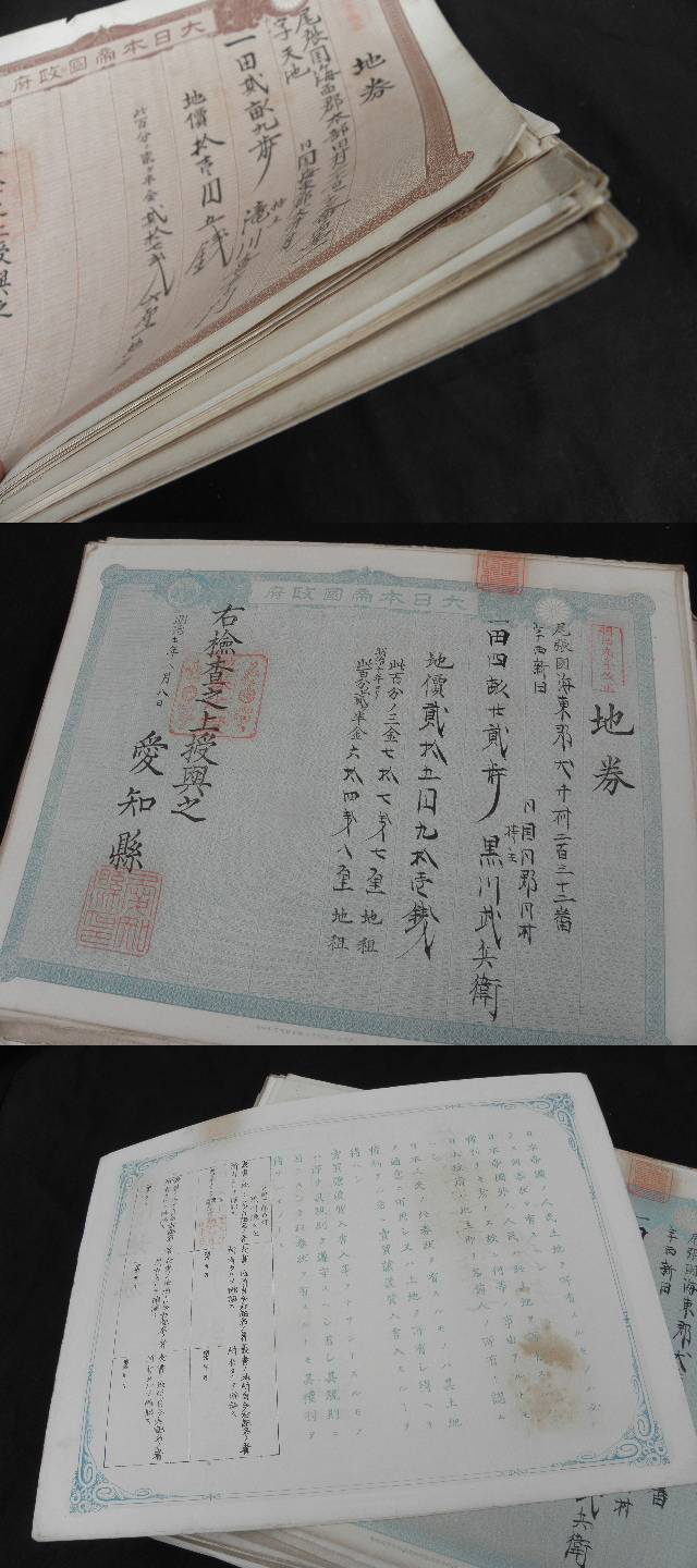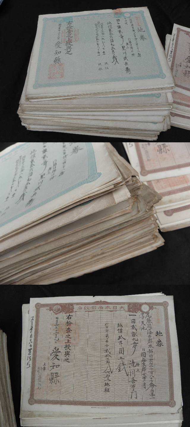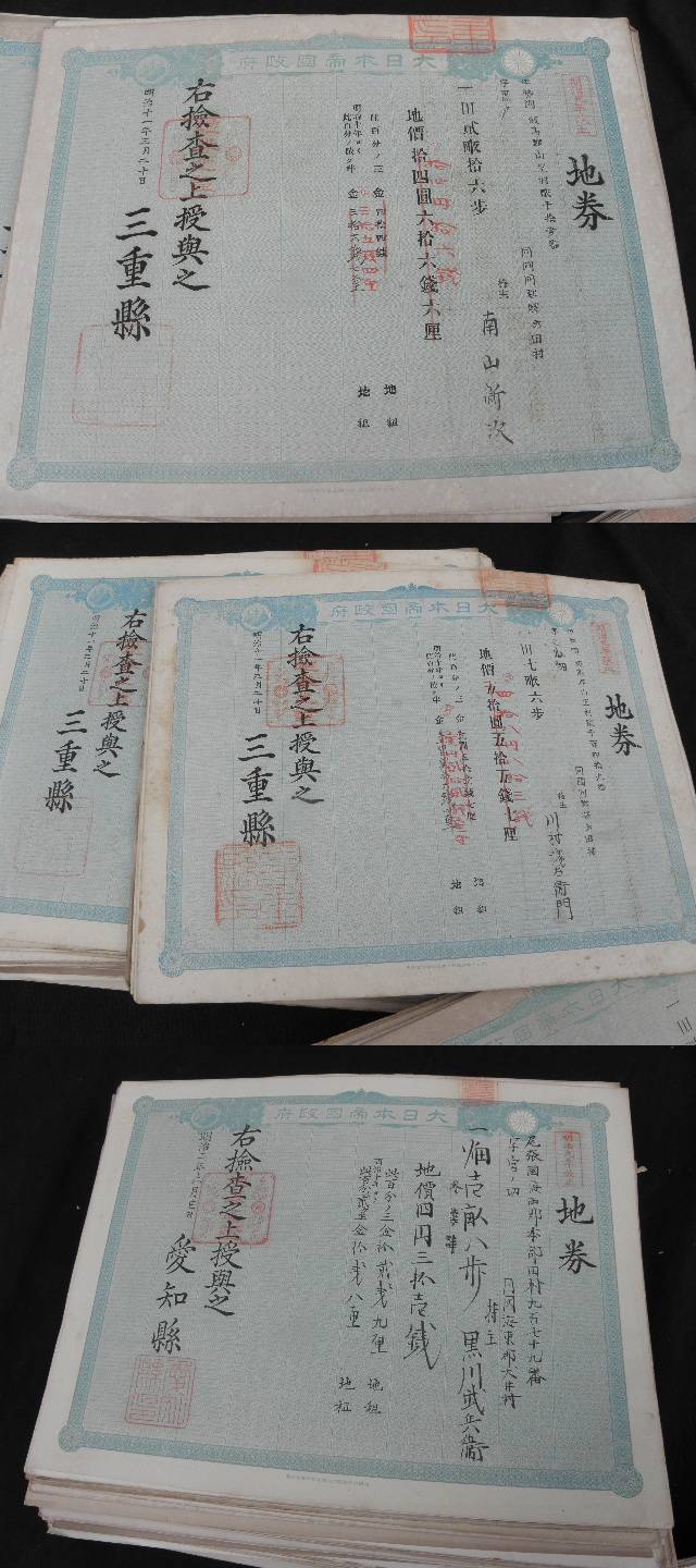 98 大量 明治 地券 550枚以上 まとめて / 戦前 愛知県 三重県 土地 證書 権利書 古文書 收藏