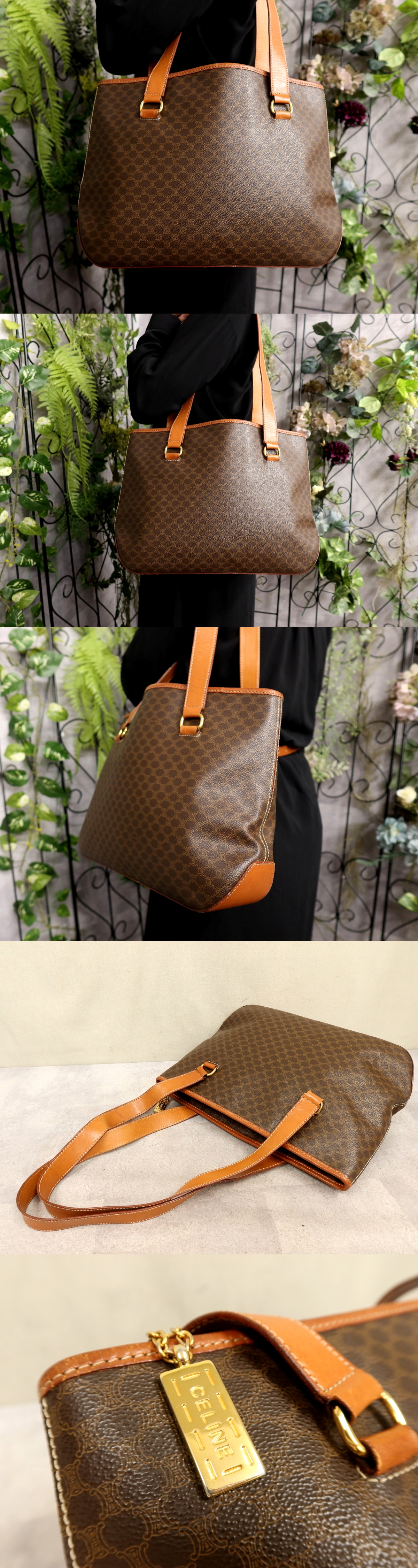 ●超美品●CELINE セリーヌ●マカダム●PVC カーフ レザー 本革●ショルダー トート バッグ●ブラウン系●ゴールド金具●A4 収納●Js61617 收藏