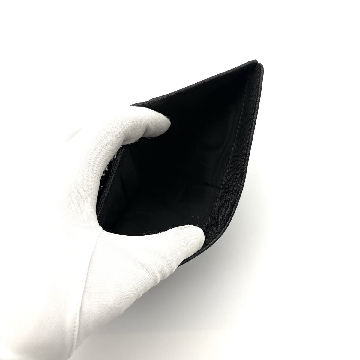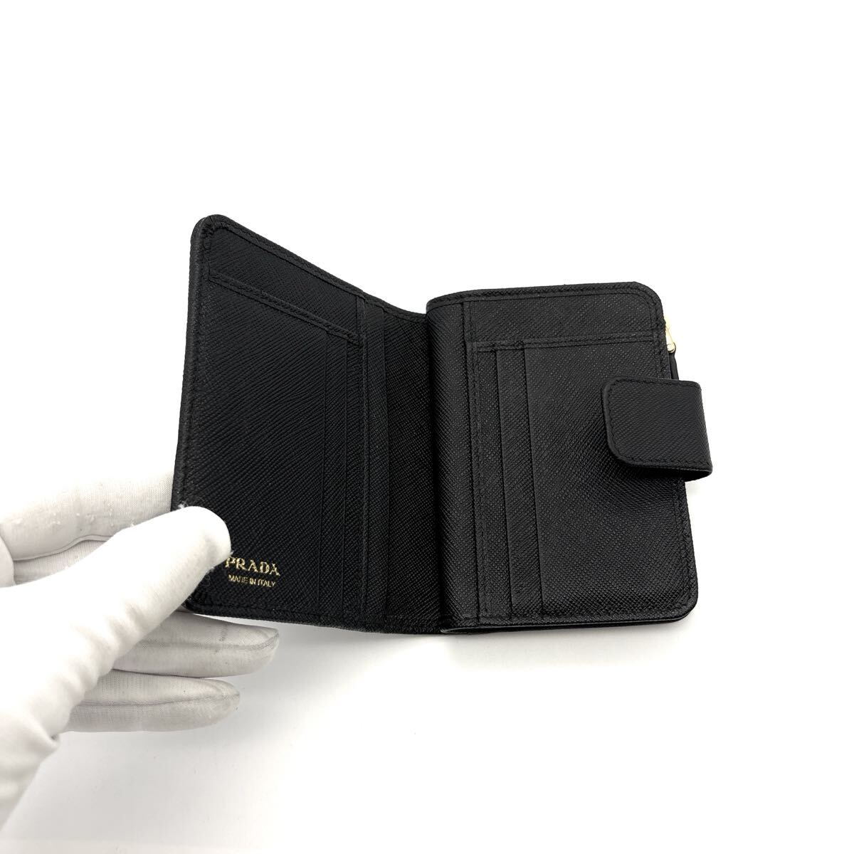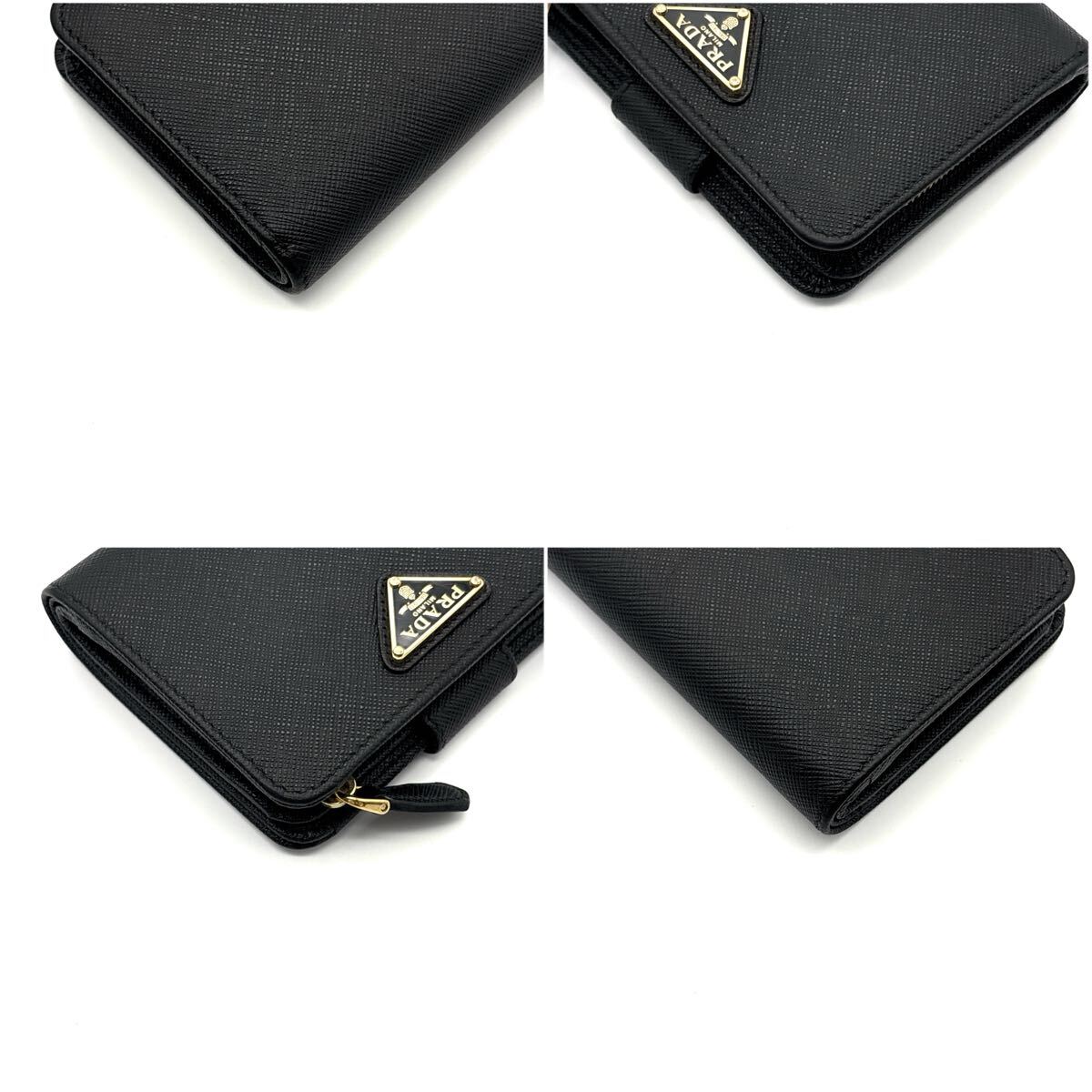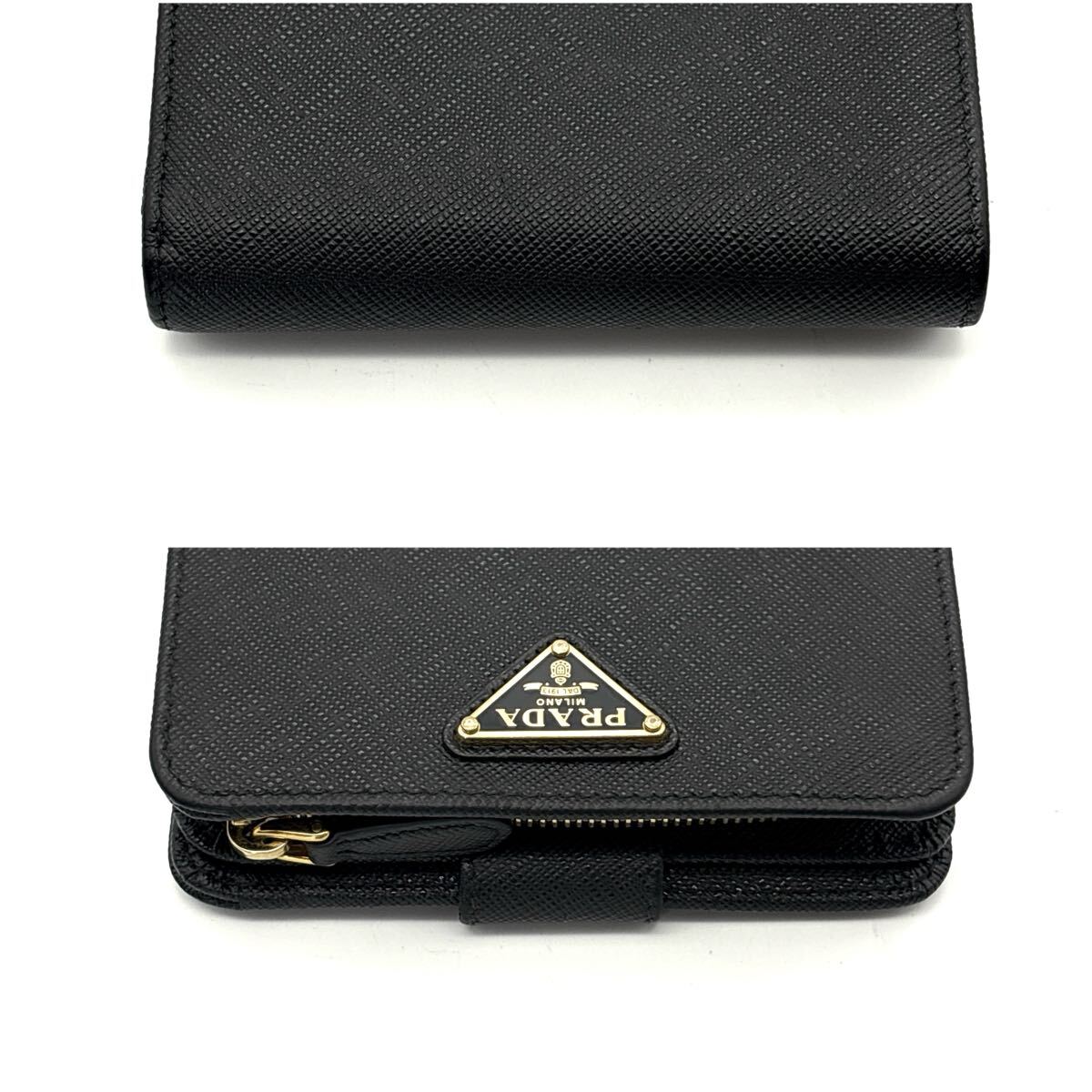 現行◆極美品◆PRADA 二つ折り財布 サフィアーノレザー 三角ゴールドロゴ 黒 收藏
