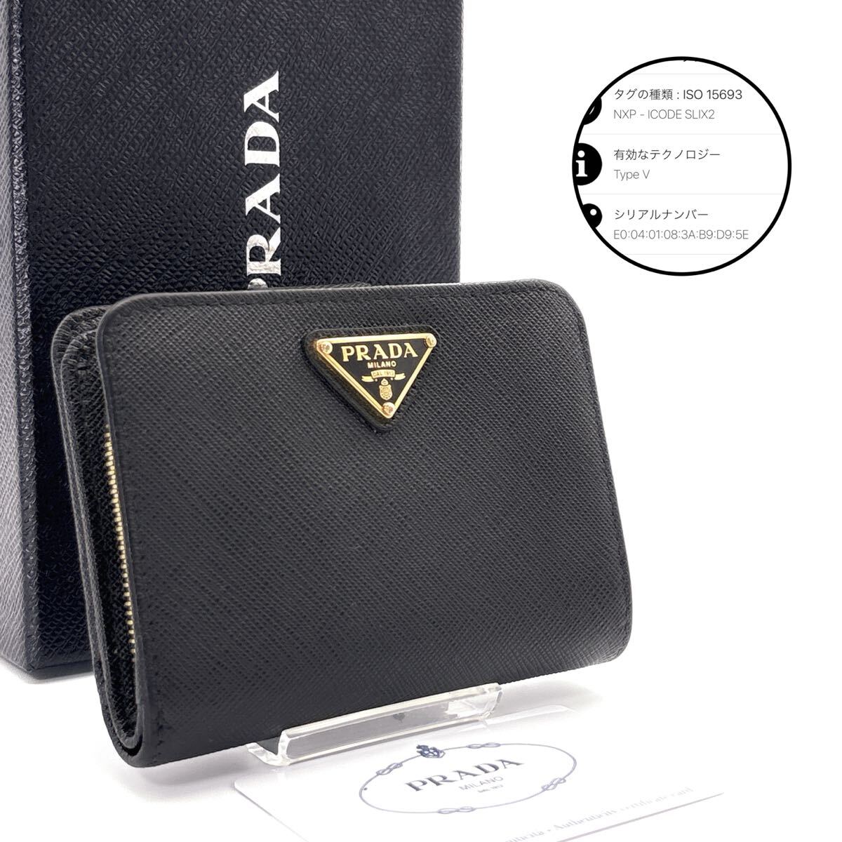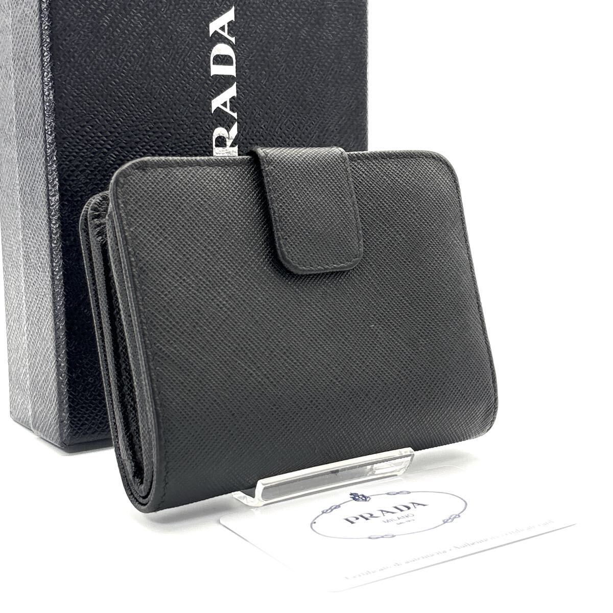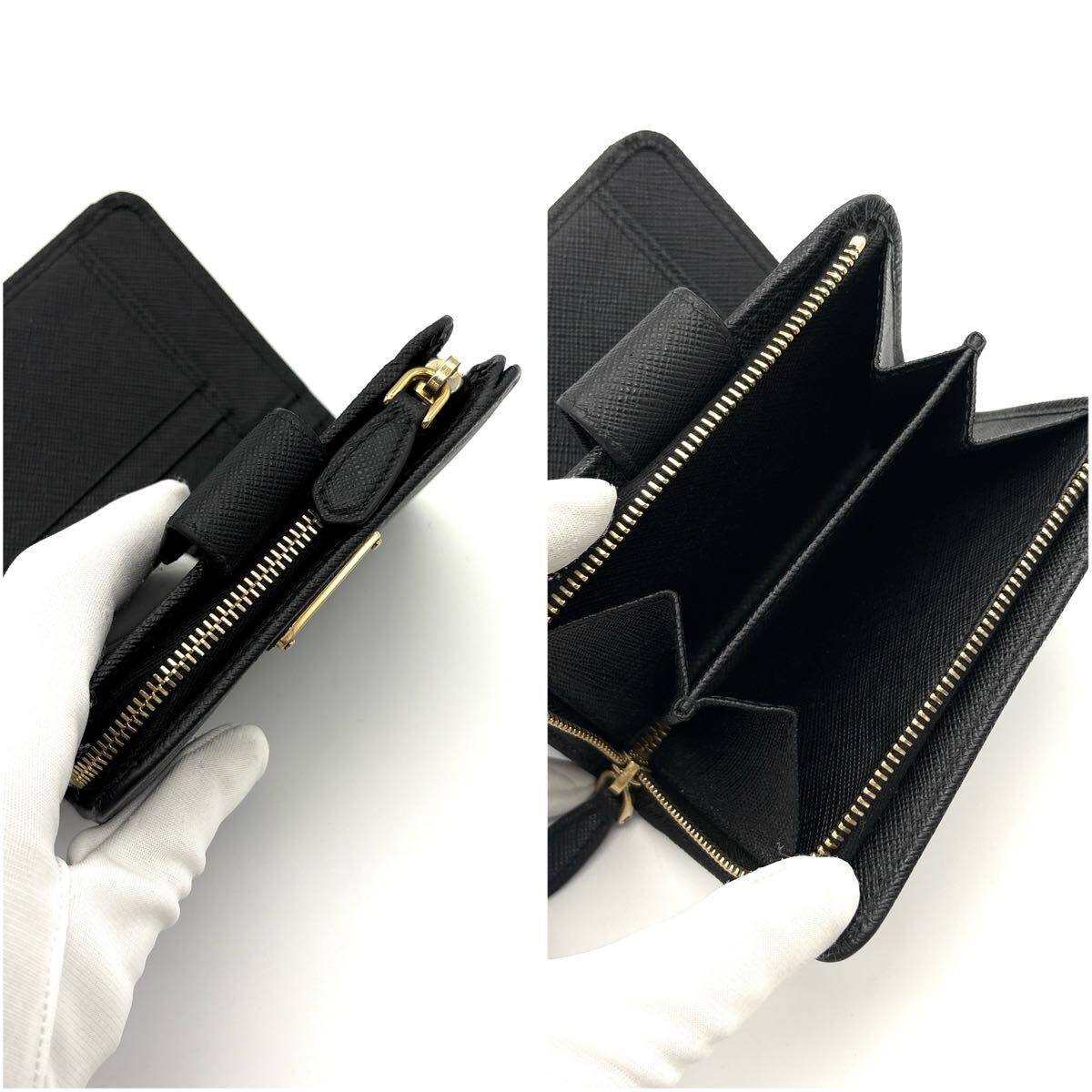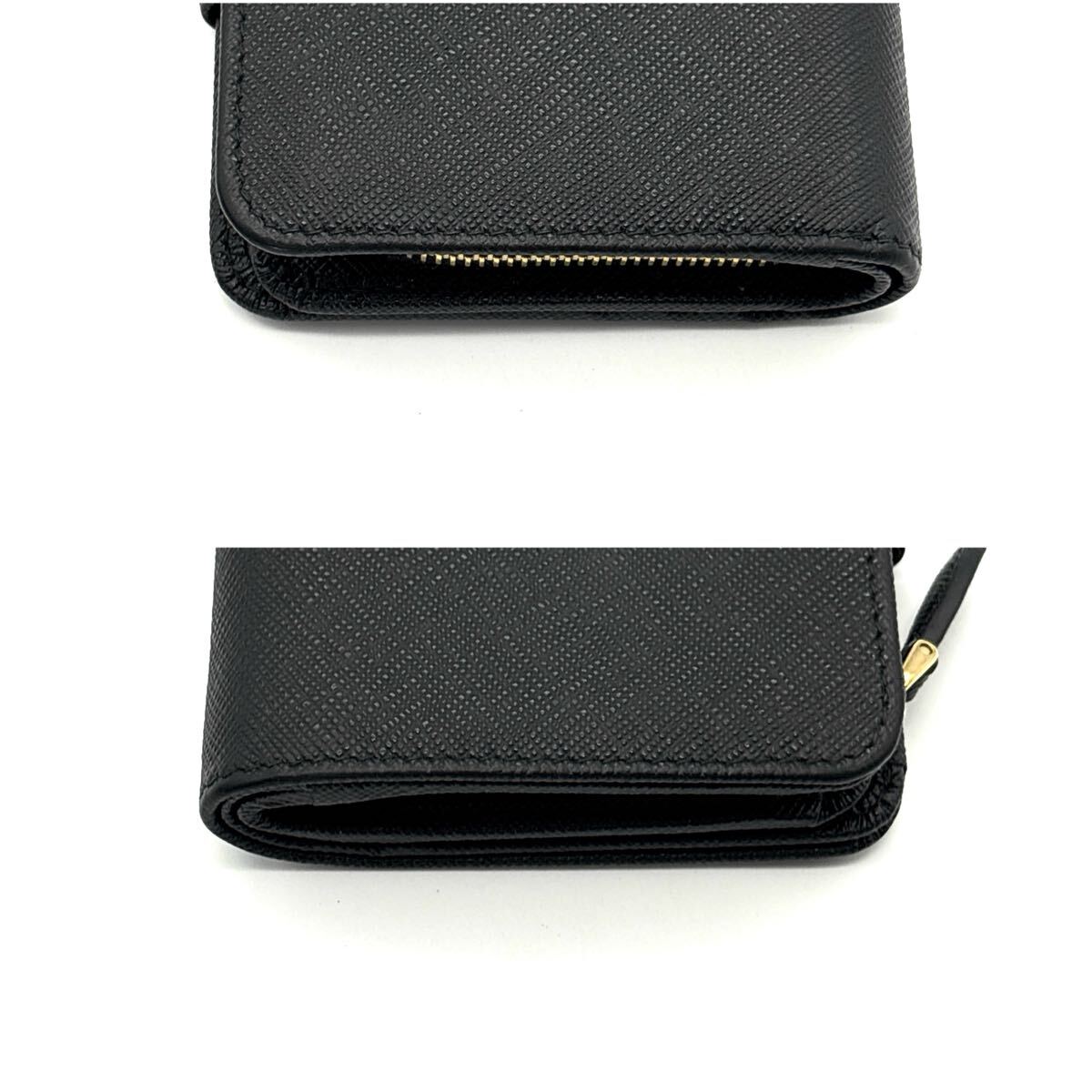 現行◆極美品◆PRADA 二つ折り財布 サフィアーノレザー 三角ゴールドロゴ 黒 收藏