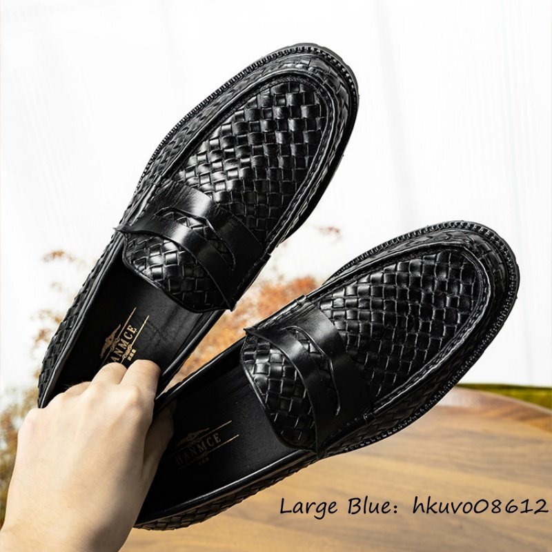 超希少■定価10万超 本革 スリッポン ローファー 職人手作り 編み込み ビジネスシューズ 最高級牛革 レザーシューズ 紳士用 革靴 黒 24.5cm 收藏