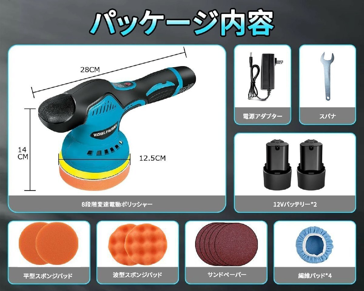 電動ポリッシャー 12V コードレス 8段階変速調整 ポリッシャー 電ポリポリッシャー 充電式ポリッシャー 收藏