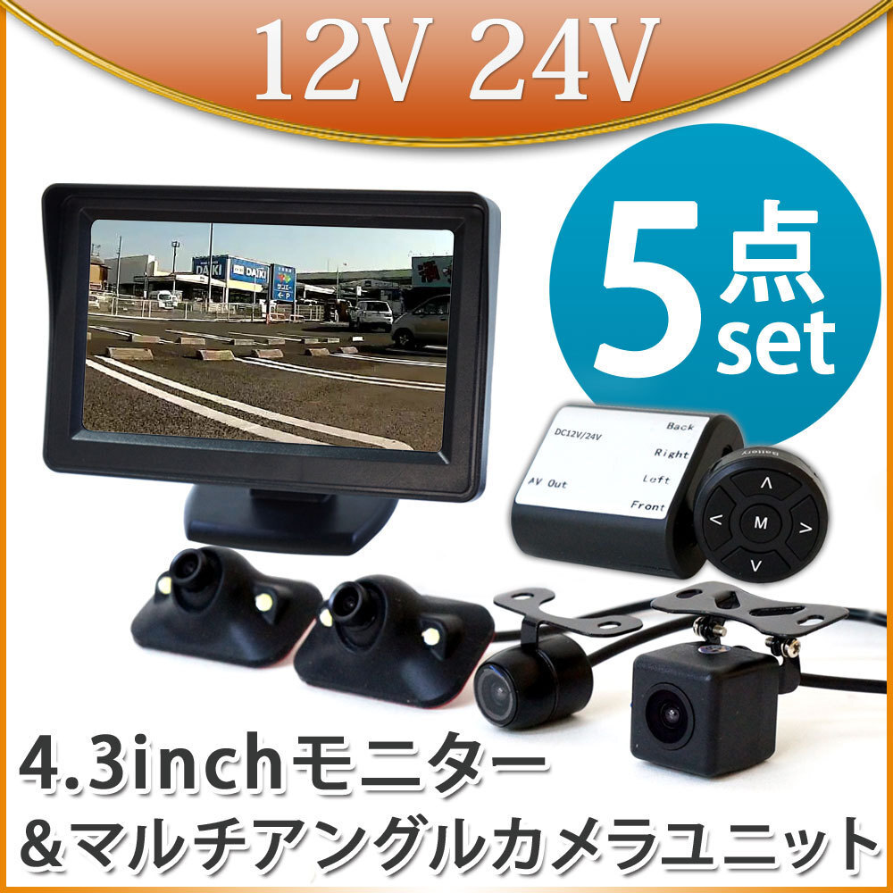 バックカメラ カメラ4台セット モニターセット 4.3インチ 360度 オンダッシュモニター バック連動 4インチ 12V 24V 4方向確認 D430BC840MB 收藏