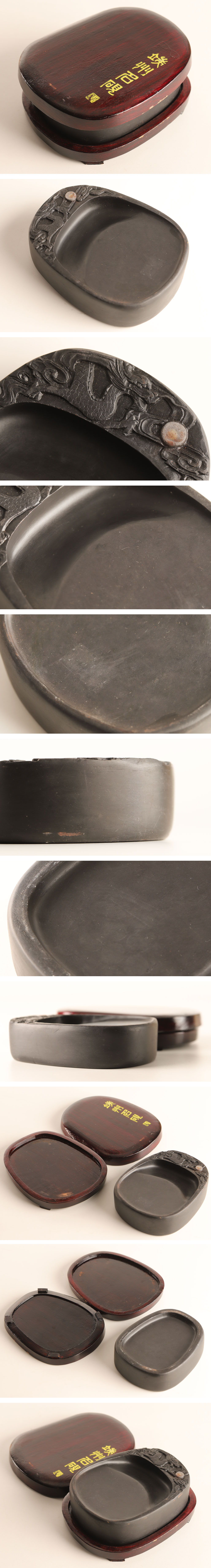 硯 幅 約10.3×13.2cm 高 約3.6cm 全体 幅 約12×15cm 高 約6cm  |