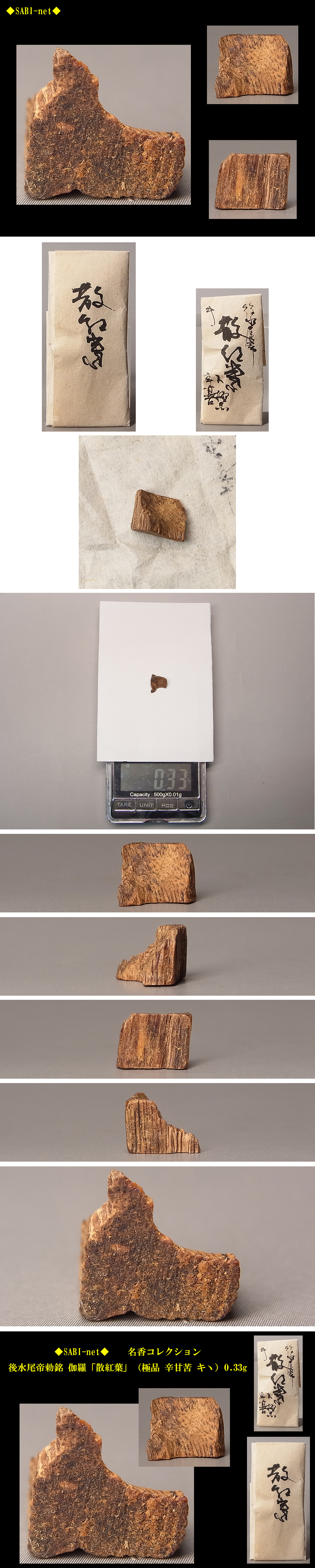 ◆SABI◆ 後水尾帝勅銘 伽羅「散紅葉」(極品 辛甘苦 キヽ)0.33g 名香コレクション◆志野流 香道 香木 沈香 香道具 香炉 收藏