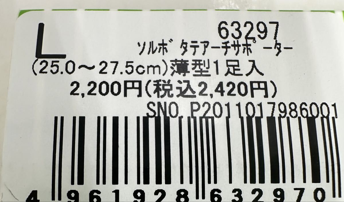 【未開封】ソルボ フットケア タテアーチサポーター (1足入) Lサイズ (25.0~27.5cm) オフホワイト