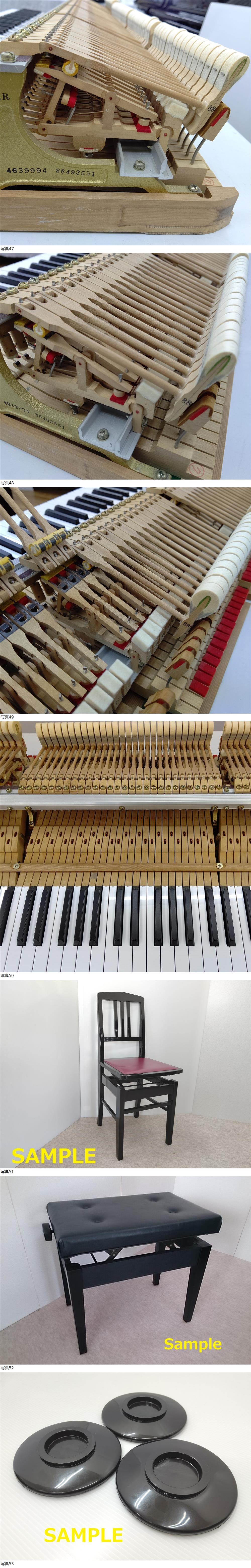 | お越しいただいた方にいつでも試弾していただけるよう調律をしていますが、運搬時の振動による影響も考えられますので、搬入後に状態をみて落札者様で実施されることをお勧めします。ピアノは内・外装とも丁寧にチェックして出荷いたします。 | ||
