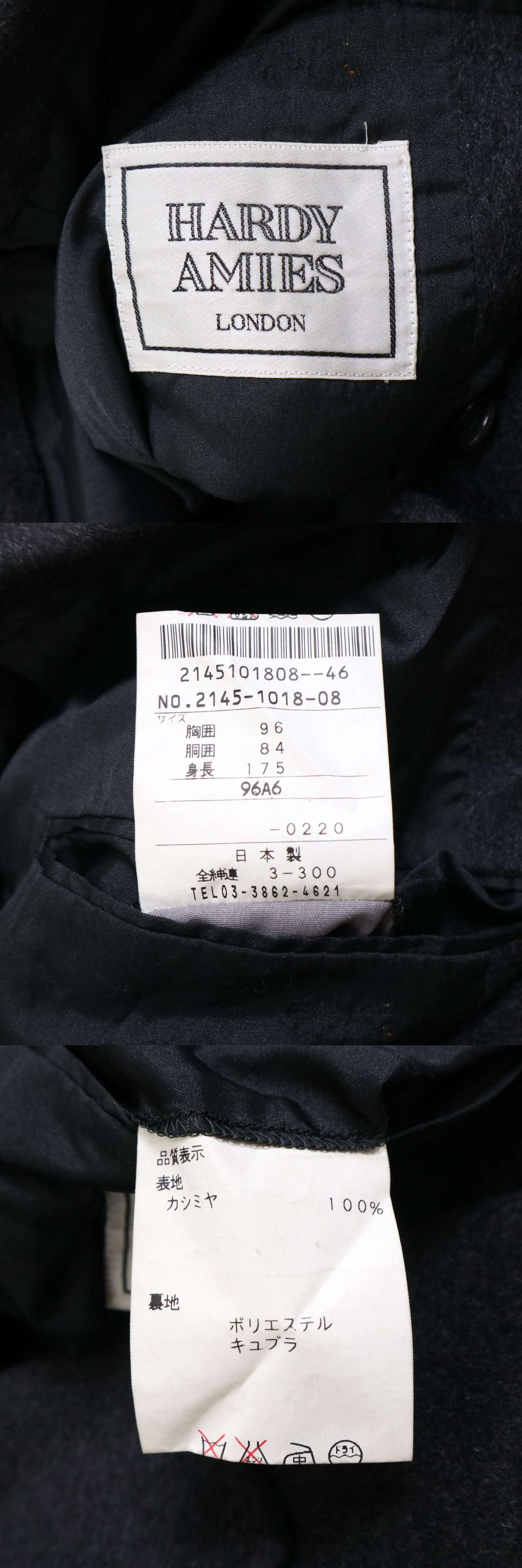 Hardy Amies ハーディ エイミス 秋冬 カシミヤ100%★ ステンカラー コート Sz.96A6 メンズ 灰 グレー 日本製 收藏