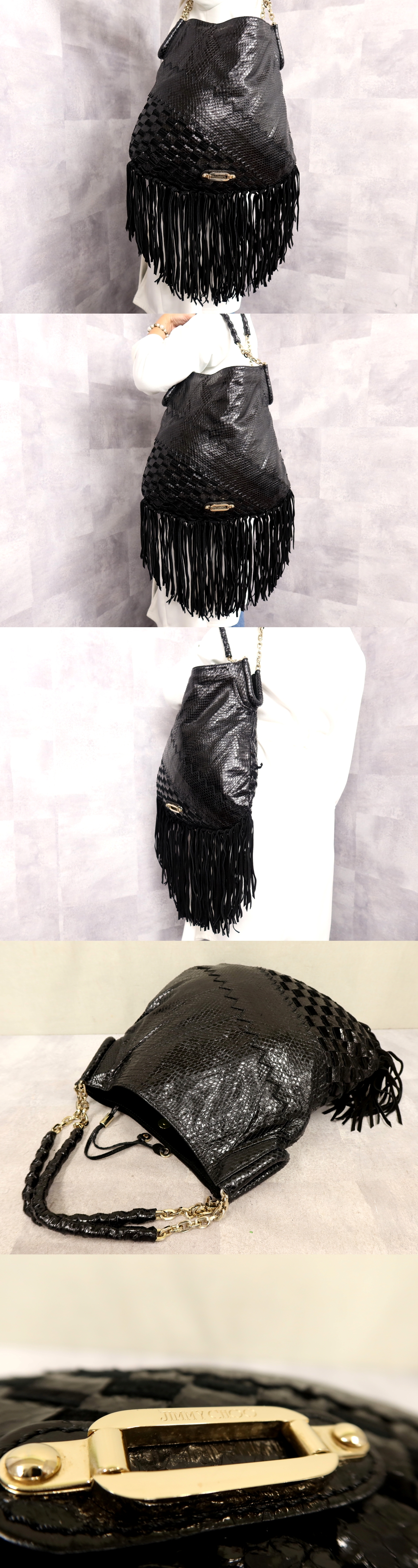 ●超美品●JIMMY CHOO ジミーチュウ●パイソン 本 ヘビ 革 スエード レザー 本革●チェーン ショルダー バッグ●黒●G金具●B5●Js62344 收藏