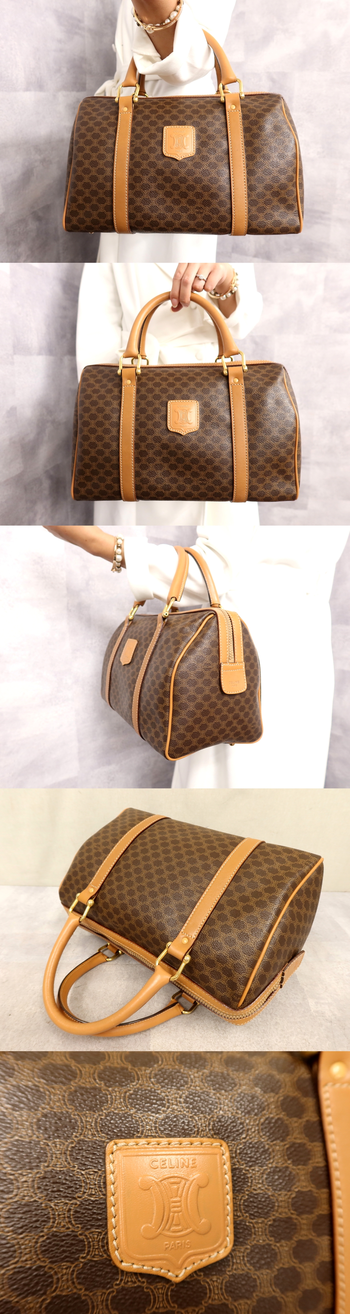 ●超美品●CELINE セリーヌ●マカダム●PVC カーフ レザー 本革●ミニ ボストン バッグ●ブラウン系●ゴールド金具●B5 書類 収納●Js62281 收藏