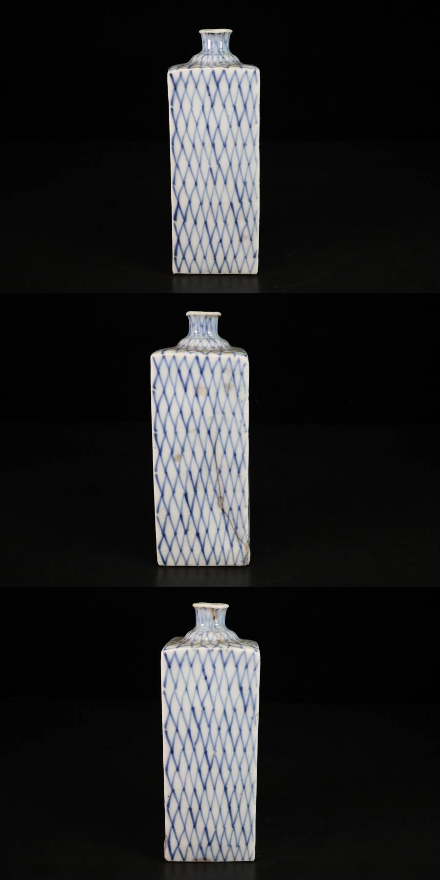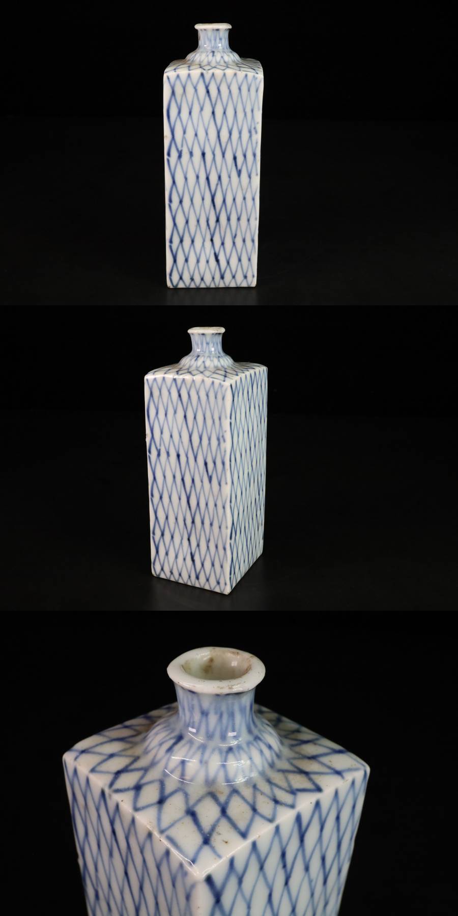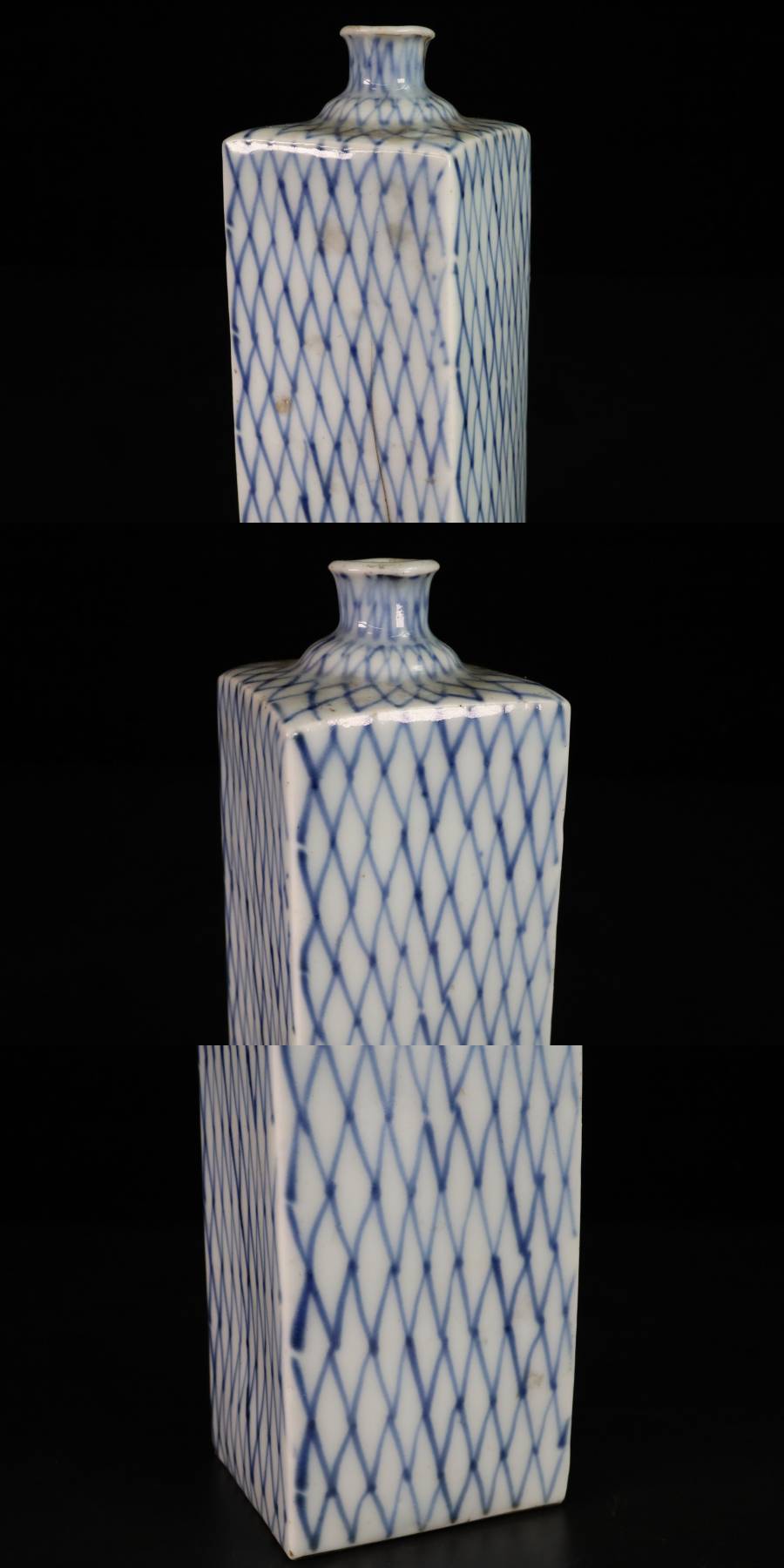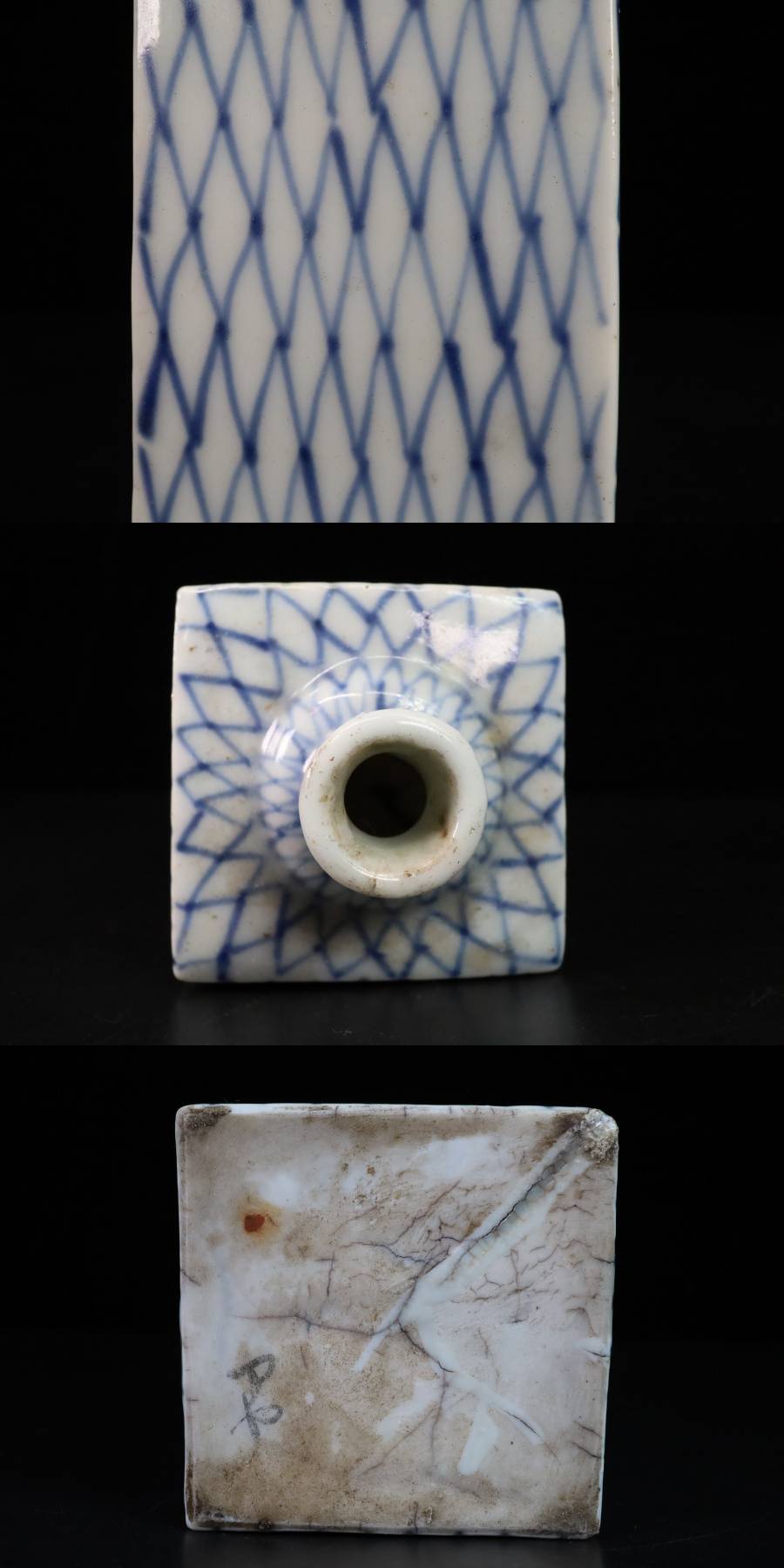 ◇雅◇ 古伊万里 染付 網目格子花入 伊万里焼 角徳利 酒器 高さ6cm/60g /HK.25.9 [A185.3] WQ3 收藏