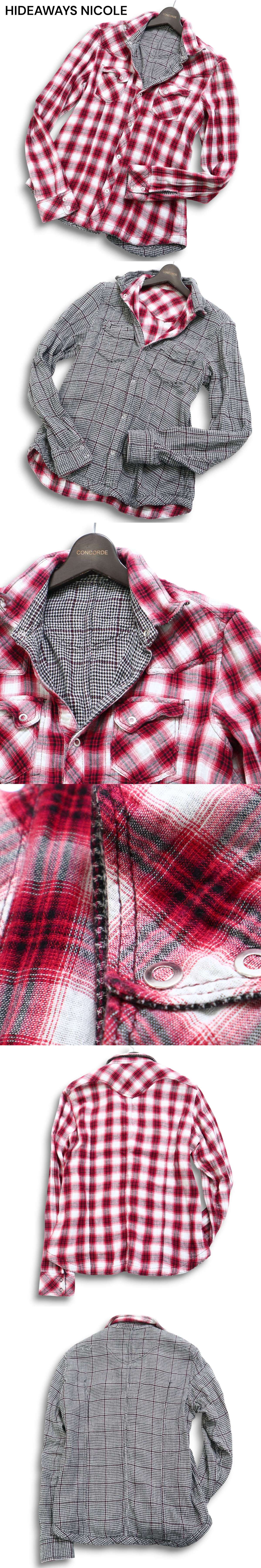 HIDEAWAYS NICOLE ハイダウェイ ニコル 襟ワイヤー★ 2WAY リバーシブル ダブルガーゼ 長袖 ウエスタン シャツ Sz.48 メンズ 收藏