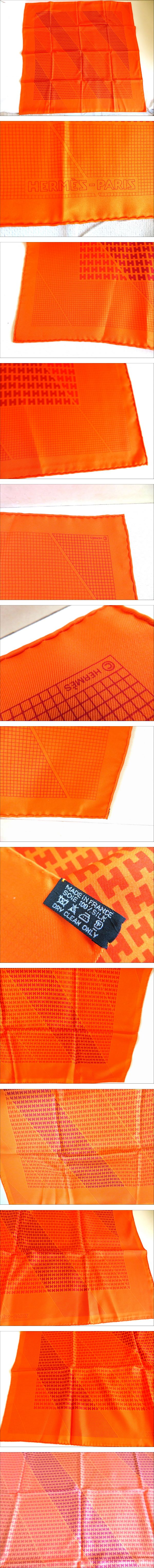 【行董】●未使用?美品 ①エルメス HERMES シルクスカーフ カレ90 去年の雪 オレンジ系 Hロゴ TB450ZZG41 收藏