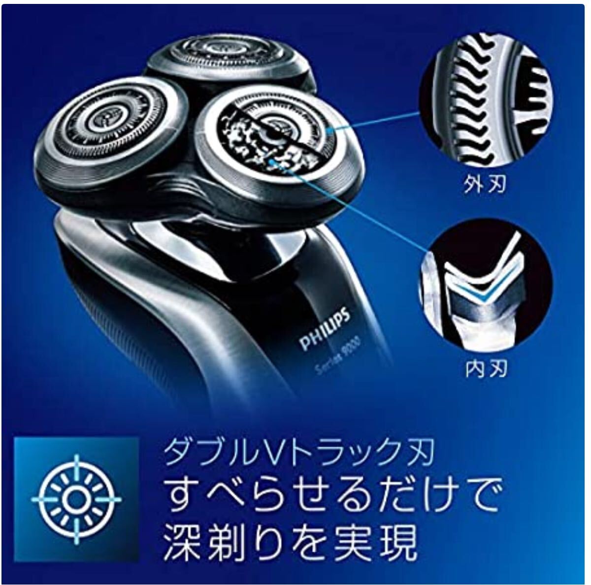・ダブルVトラック刃: V字型の内刃と外刃がヒゲを挟み込んで深剃りを実現