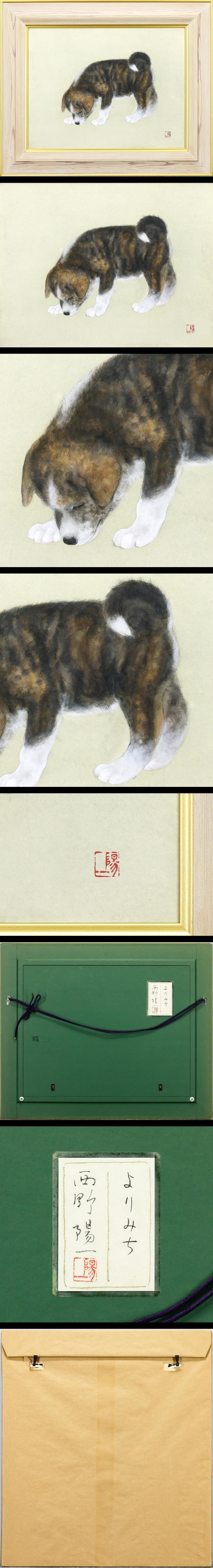 【真作】【WISH】西野陽一「よりみち」日本画 10号 共シール ◆やわらかな毛並みの子犬名画 〇無所属注目画家 京都府出身 #25112564 收藏