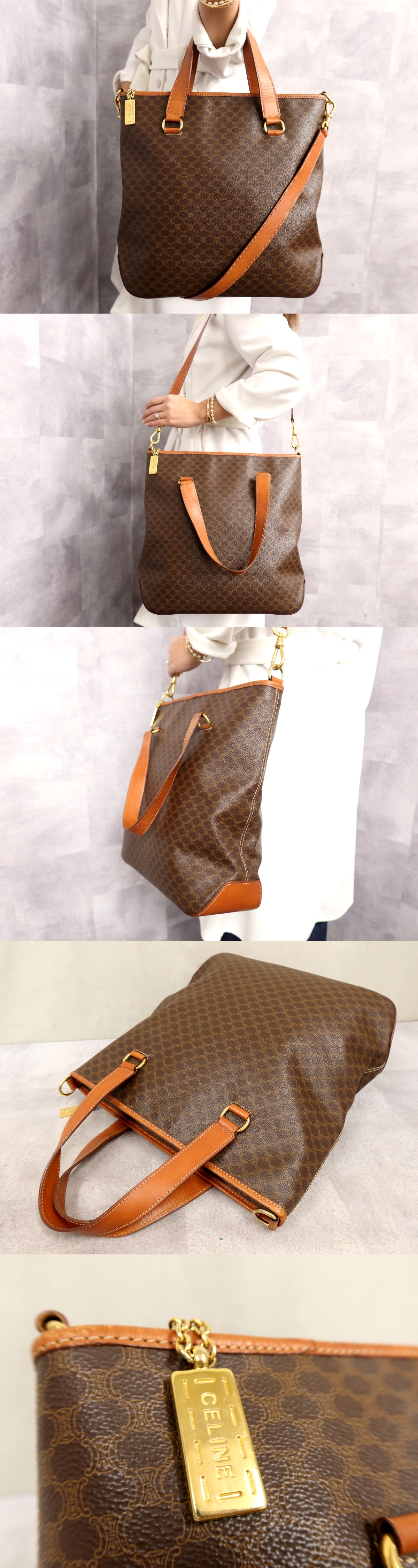 超美品●CELINE セリーヌ●マカダム●PVC カーフ レザー 本革●2way トート ハンド バッグ●ブラウン キャメル●ゴールド金具●A4●Js62913 收藏