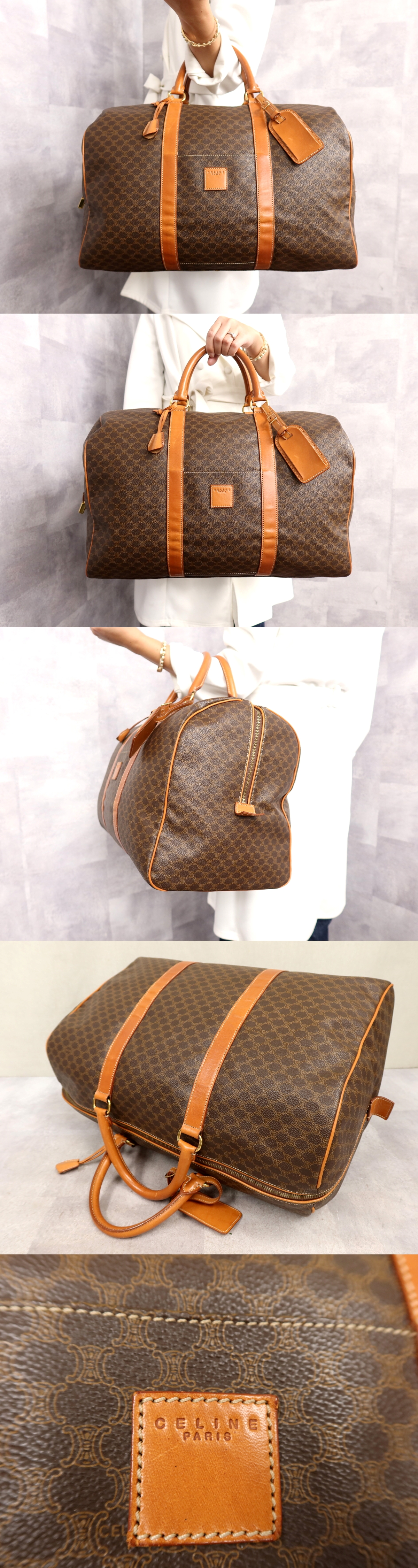 ●超美品●CELINE セリーヌ●マカダム●ロゴ型押し●PVC カーフ レザー 本革●ボストン バッグ●ブラウン系●ゴールド金具●Js62911 收藏