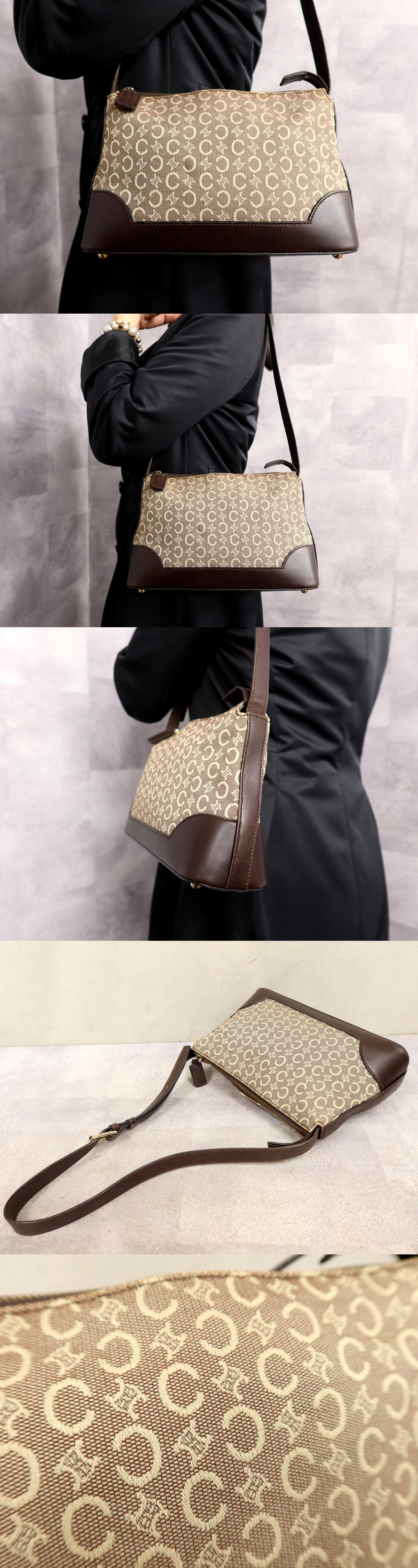 ●超美品●CELINE セリーヌ●Cマカダム●キャンバス カーフ レザー 本革●ショルダー バッグ●ブラウン ベージュ●肩掛け●かばん●Js62874 收藏