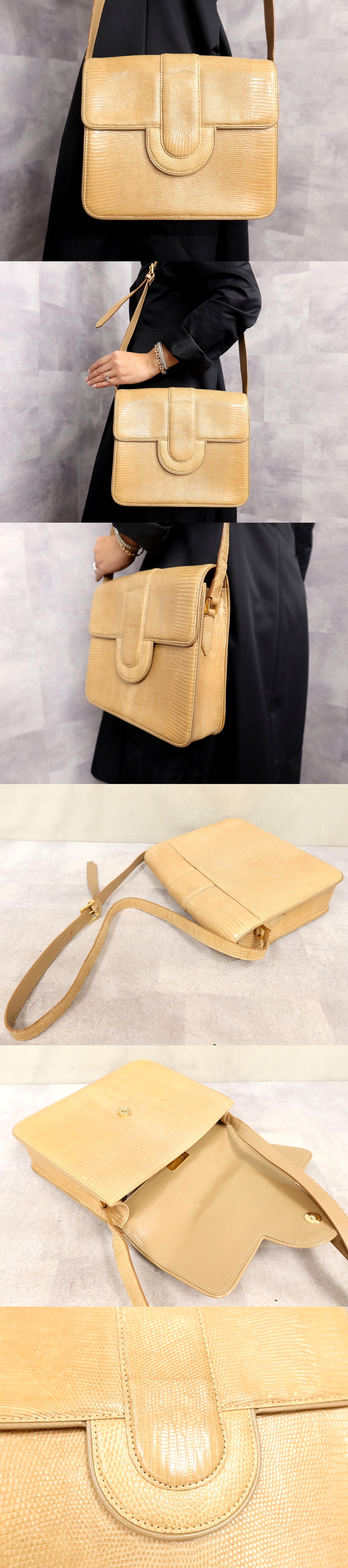 ●超美品●YSL Yves Saint-Laurent イヴ・サンローラン●リザード 型押し レザー 本革●ショルダー バッグ●ベージュ●B5 かばん●Js63031 收藏