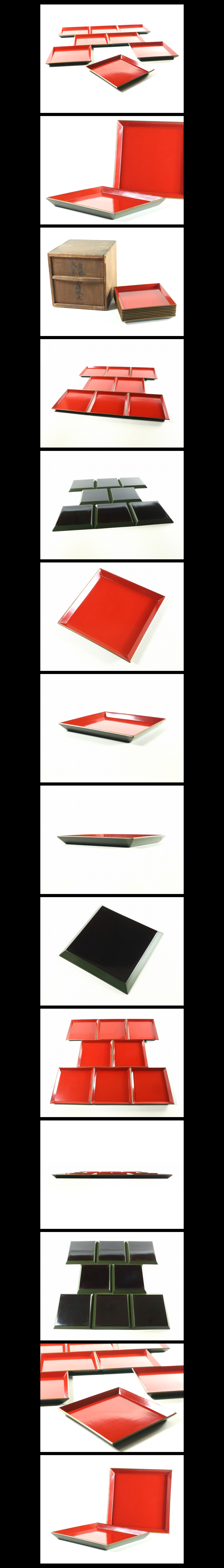 ●c114●【天然木四方菓子器8客/□約18.3cm塗分朱青地金縁布着共箱/折敷酒器盆菓子皿菓子盆煎茶盆点心盆】検お茶会煎茶道具茶懐石●西瓜●